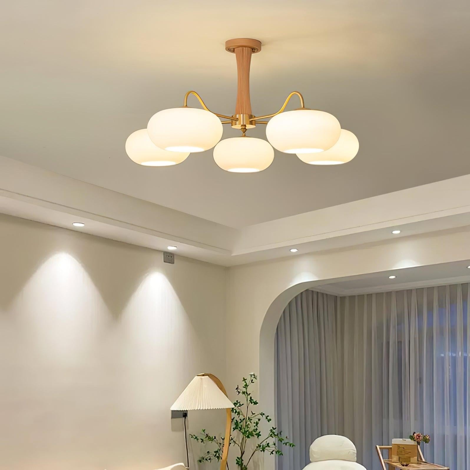 Brass Persimmon Glass Chandelier