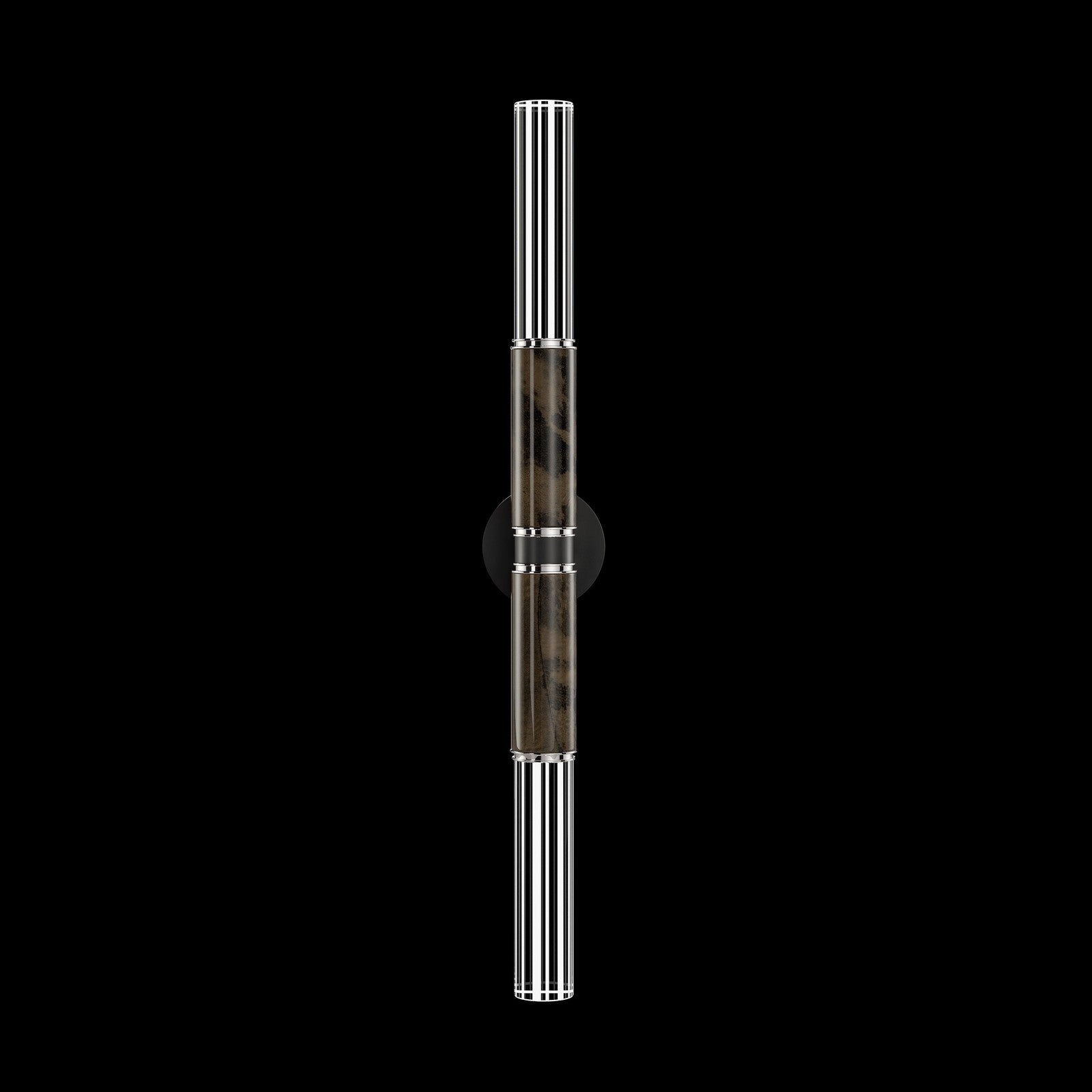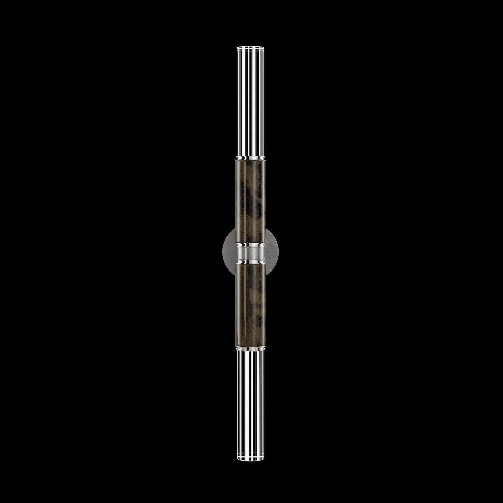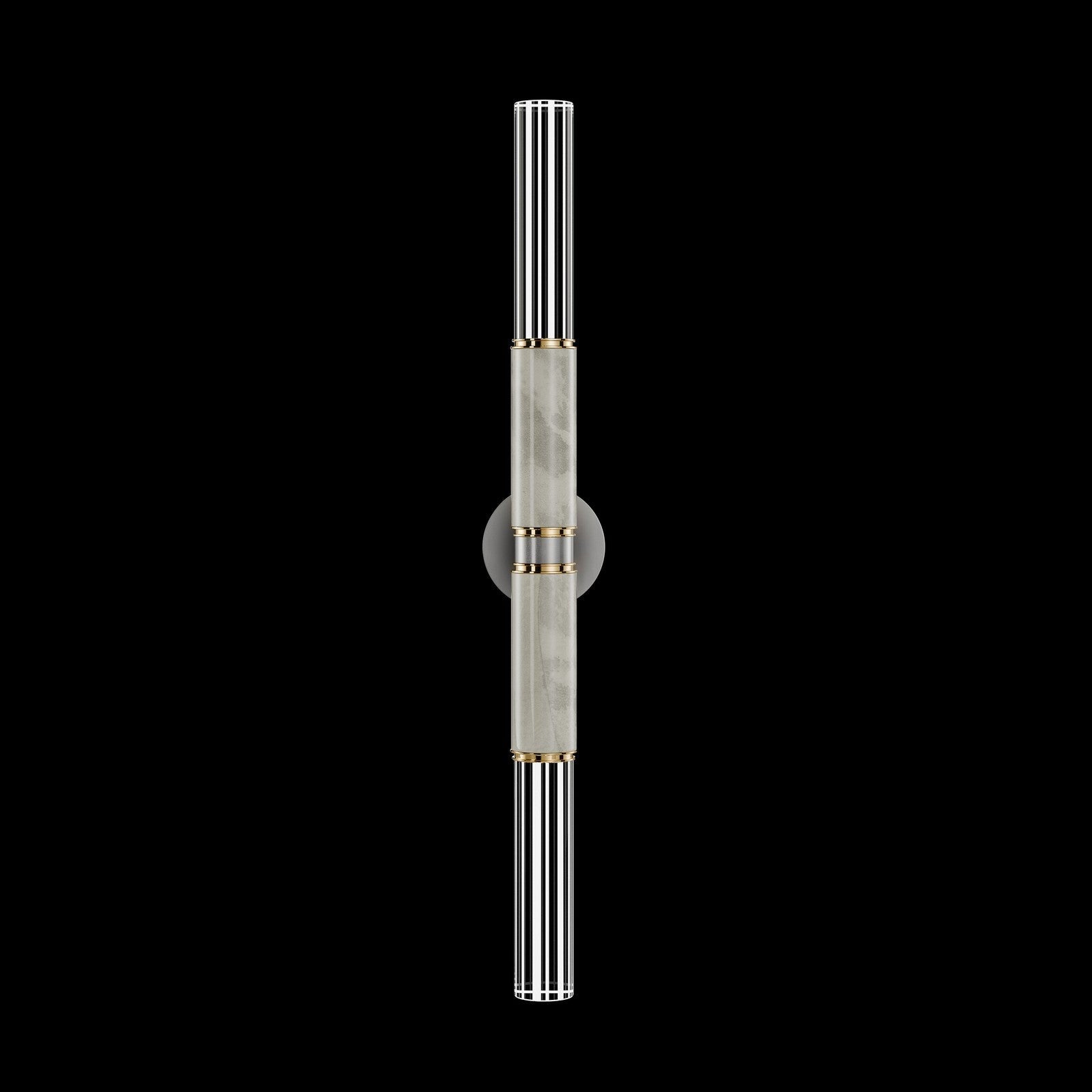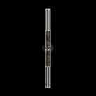 A versatile LED wall sconce featuring tubular lines combined with parchment and glass, offering warm illumination in vertical or horizontal orientation.