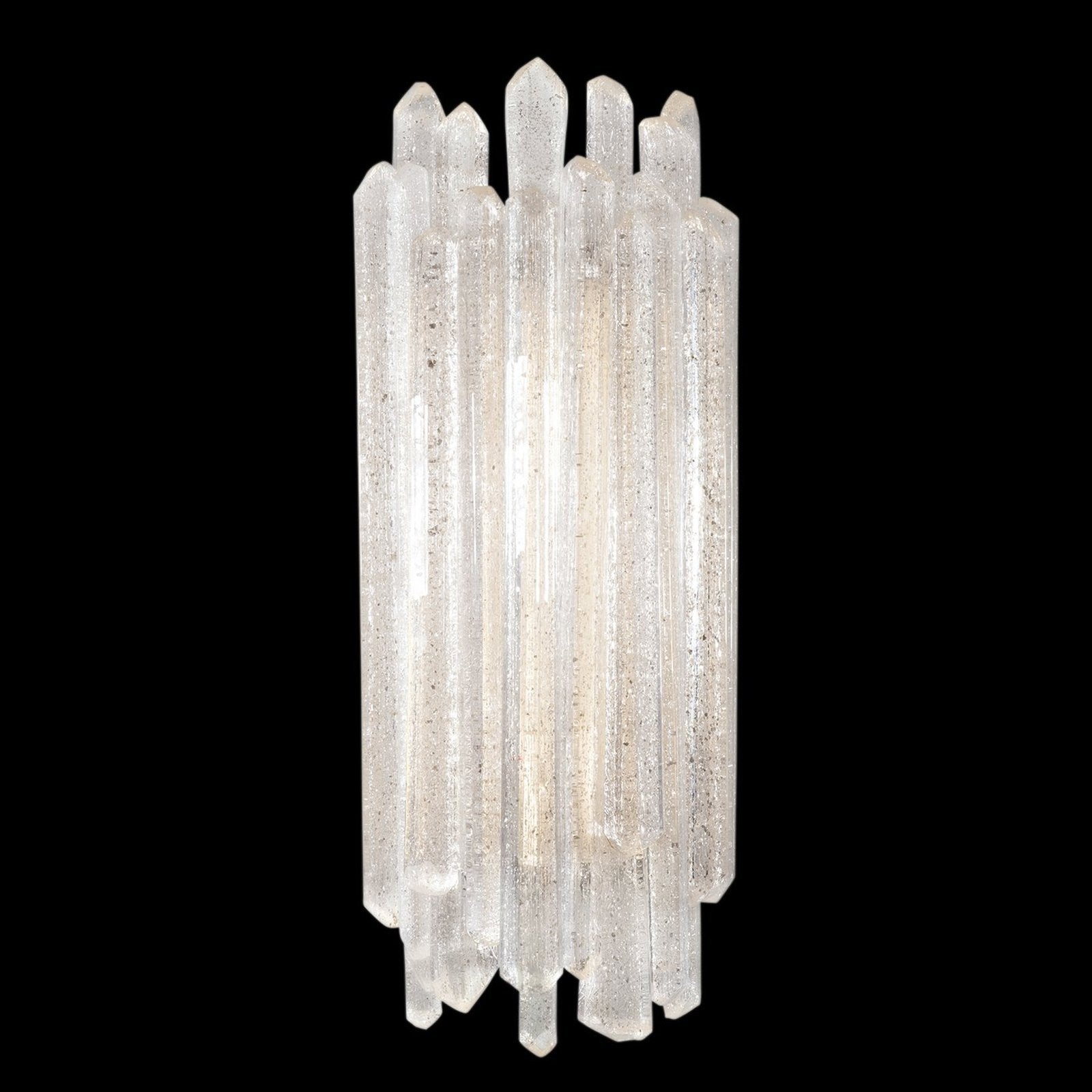 A handcrafted wall sconce featuring natural quartz spires that emit a soft, radiant glow through polished crystal surfaces.