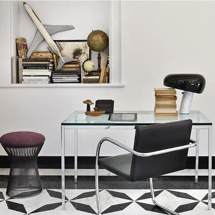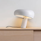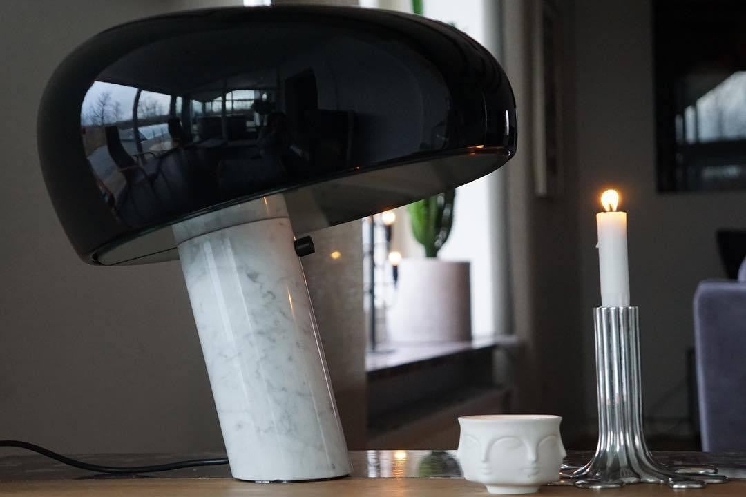 Elegant and sculptural, this table lamp combines polished metal and Carrara marble for a timeless balance of texture and tone. Its soft, diffused light and distinctive silhouette make it an exquisite addition to bedrooms, studies, or modern living areas — a true statement of understated luxury.