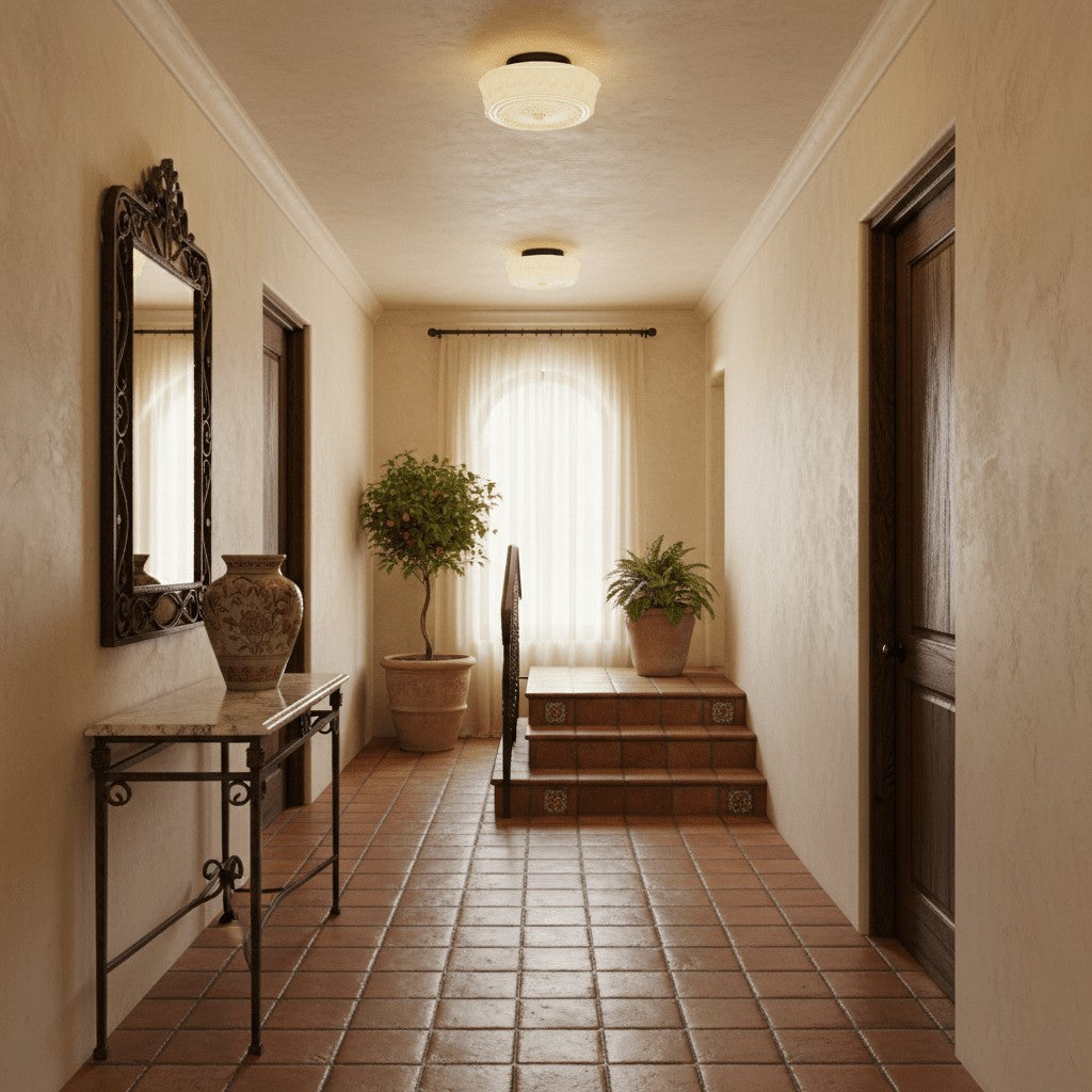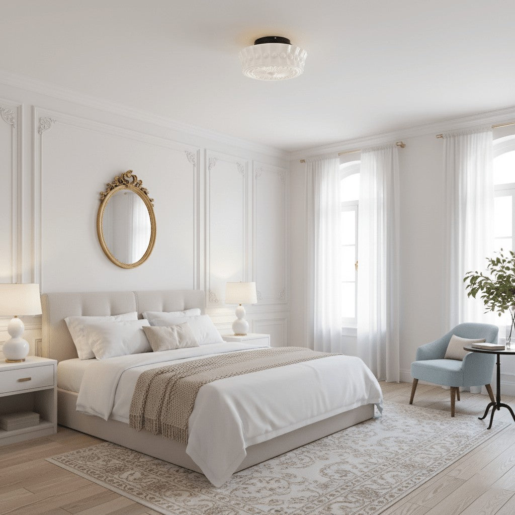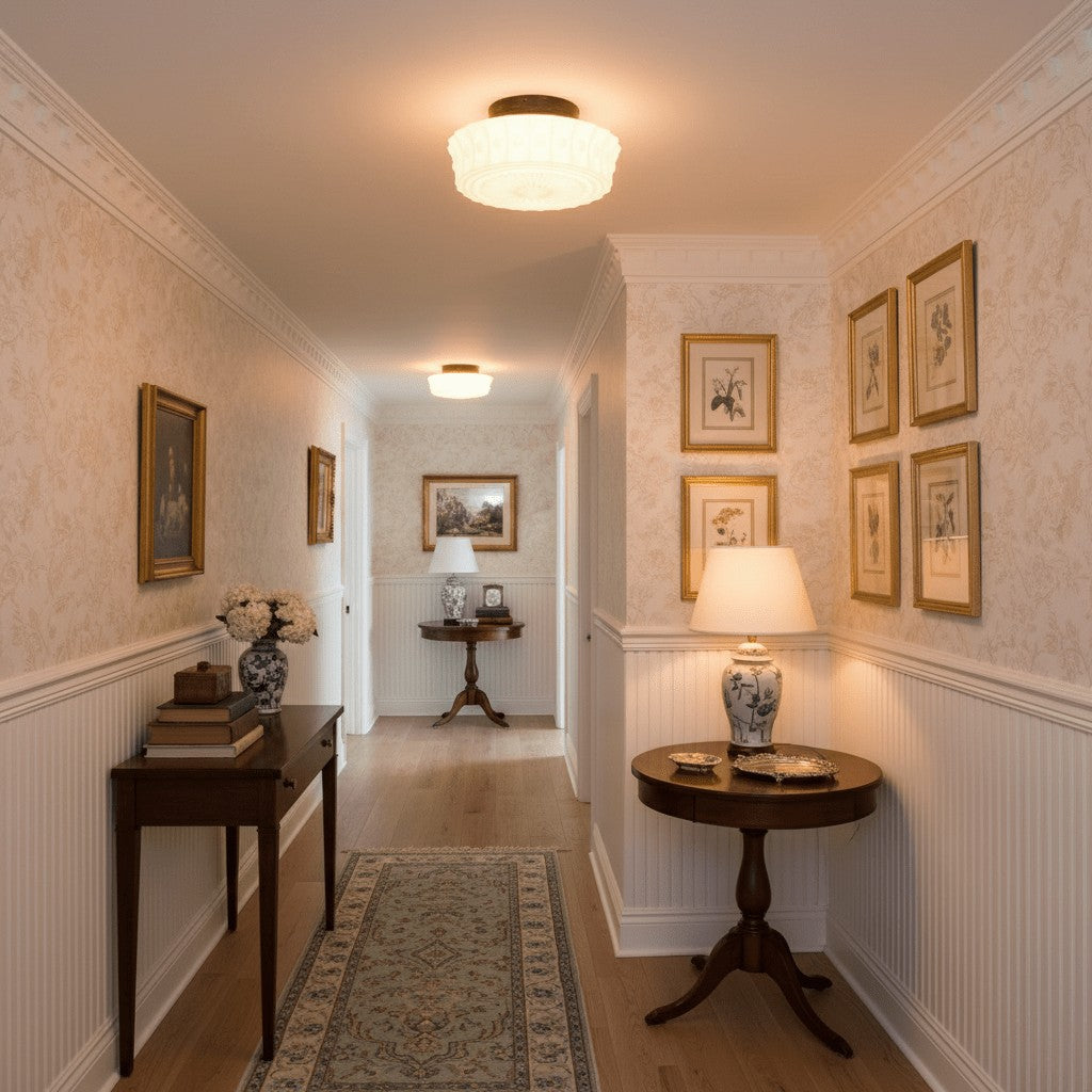 Classic meets contemporary in the Charles Edwards Ceiling Light. Its refined form and glass diffusers bring timeless charm to any room, from modern dining spaces to elegant entryways. The warm metallic tones and balanced symmetry make it a standout piece of understated sophistication.