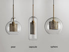 Elegant and versatile, the Chiswick glass pendant light adds a touch of vintage sophistication to any setting. Available in sphere, pear, and capsule shapes, its luminous glass shade glows beautifully, perfect for kitchens, hallways, or clustered arrangements over dining spaces.