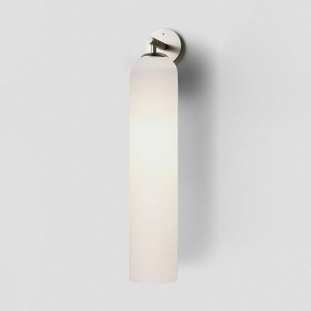 Elegant and sculptural, this art glass wall light blends timeless glamour with modern craftsmanship. Its sleek cylindrical form floats gracefully on the wall, creating a soft, luminous statement that enhances both classic and contemporary interiors.