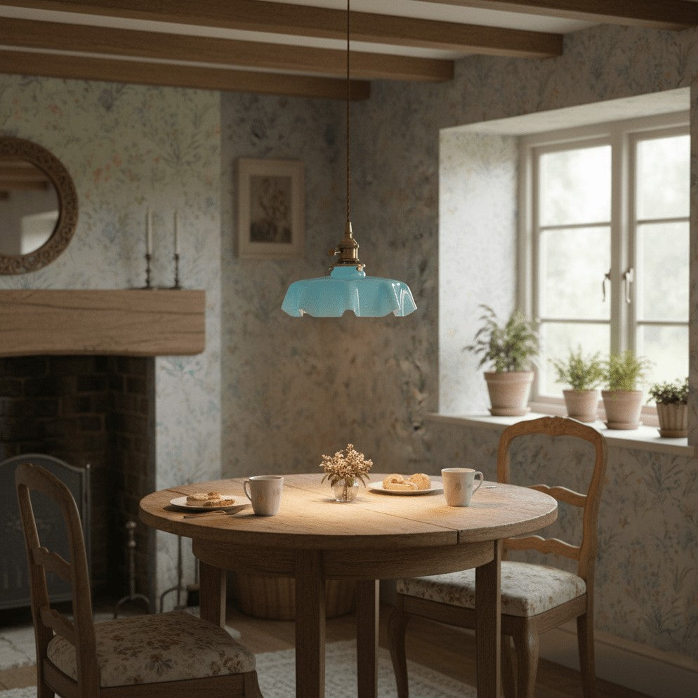 Delicate and timeless, this French-inspired ceramic pendant features a pleated shade that evokes classic charm. Perfect above kitchen islands, breakfast nooks, or bedside tables, it adds a soft, romantic glow with a touch of vintage style.