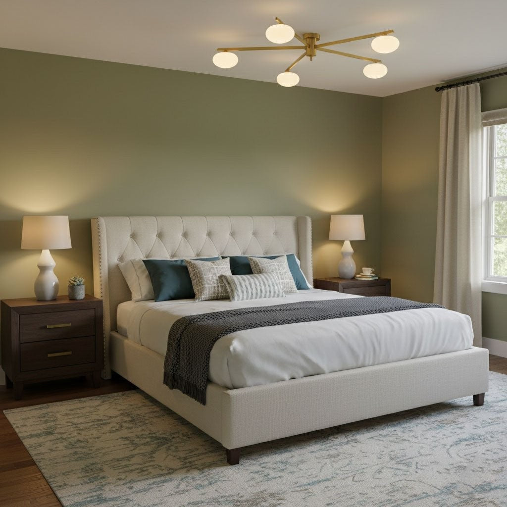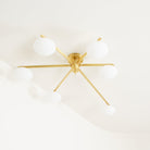 With its slender arms and soft opal glass orbs, the Jasper Ceiling Light brings balance and refinement to modern interiors. Its sleek profile and sculptural form make it perfect for open spaces with lower ceilings.
