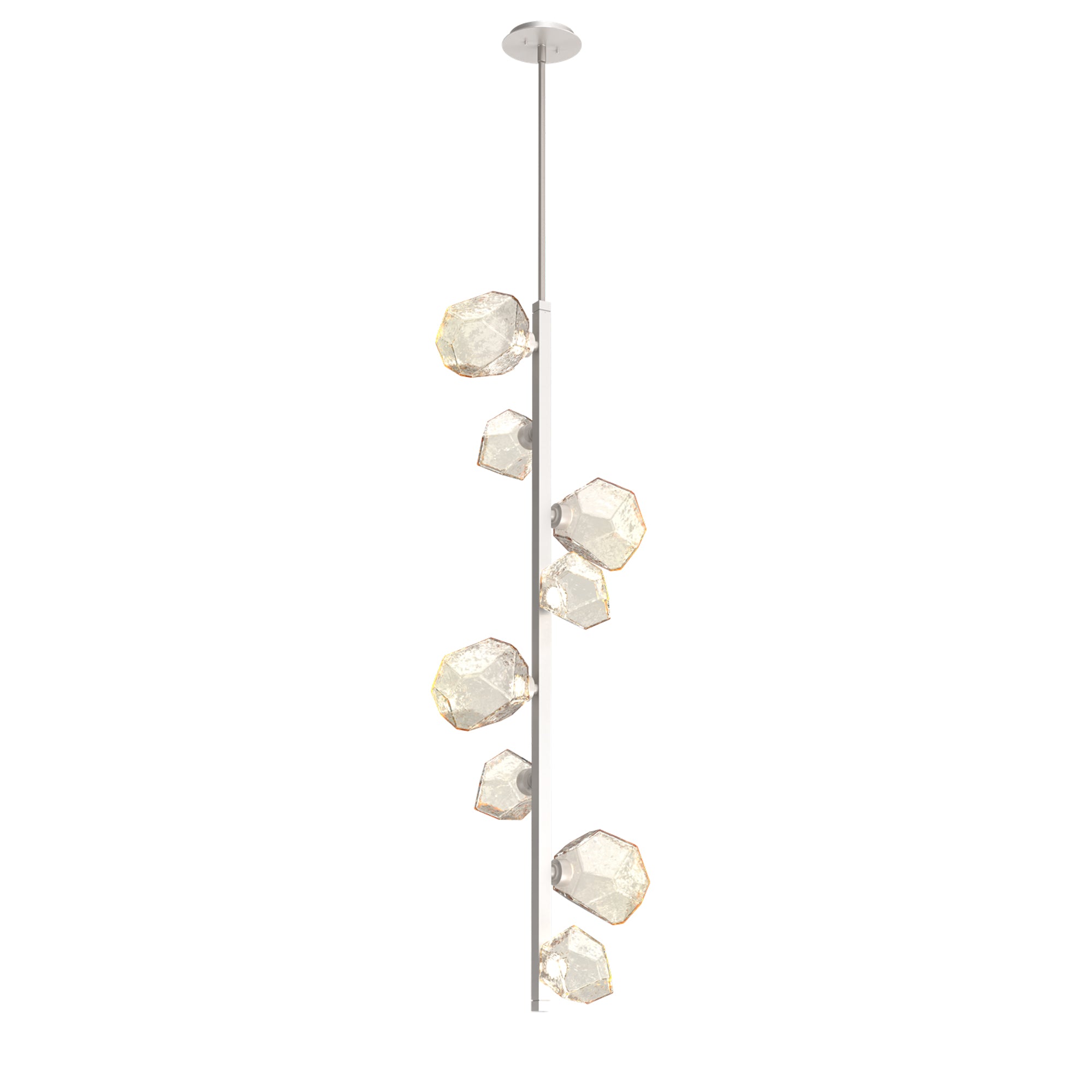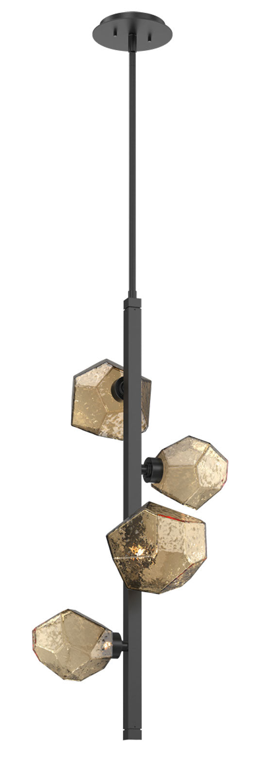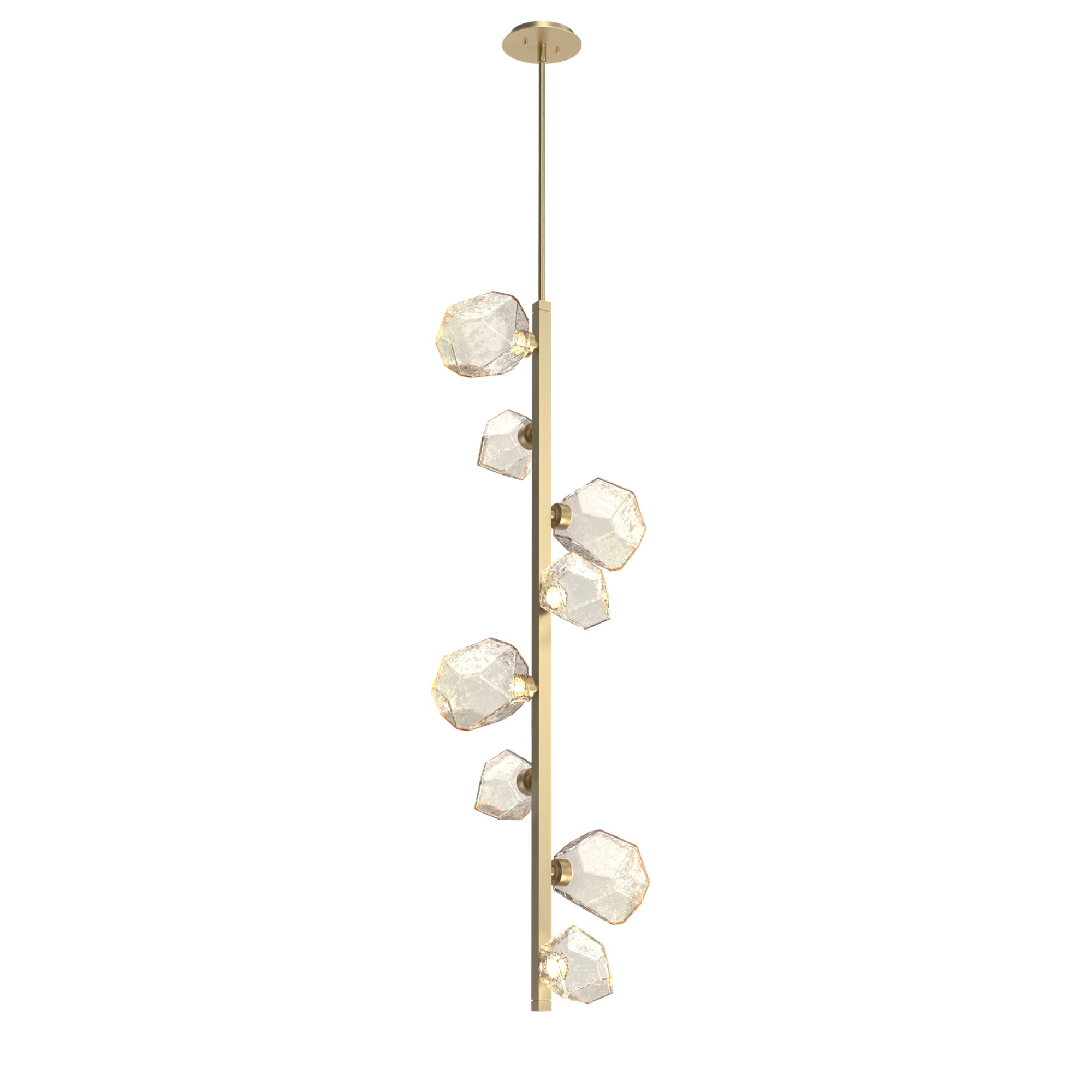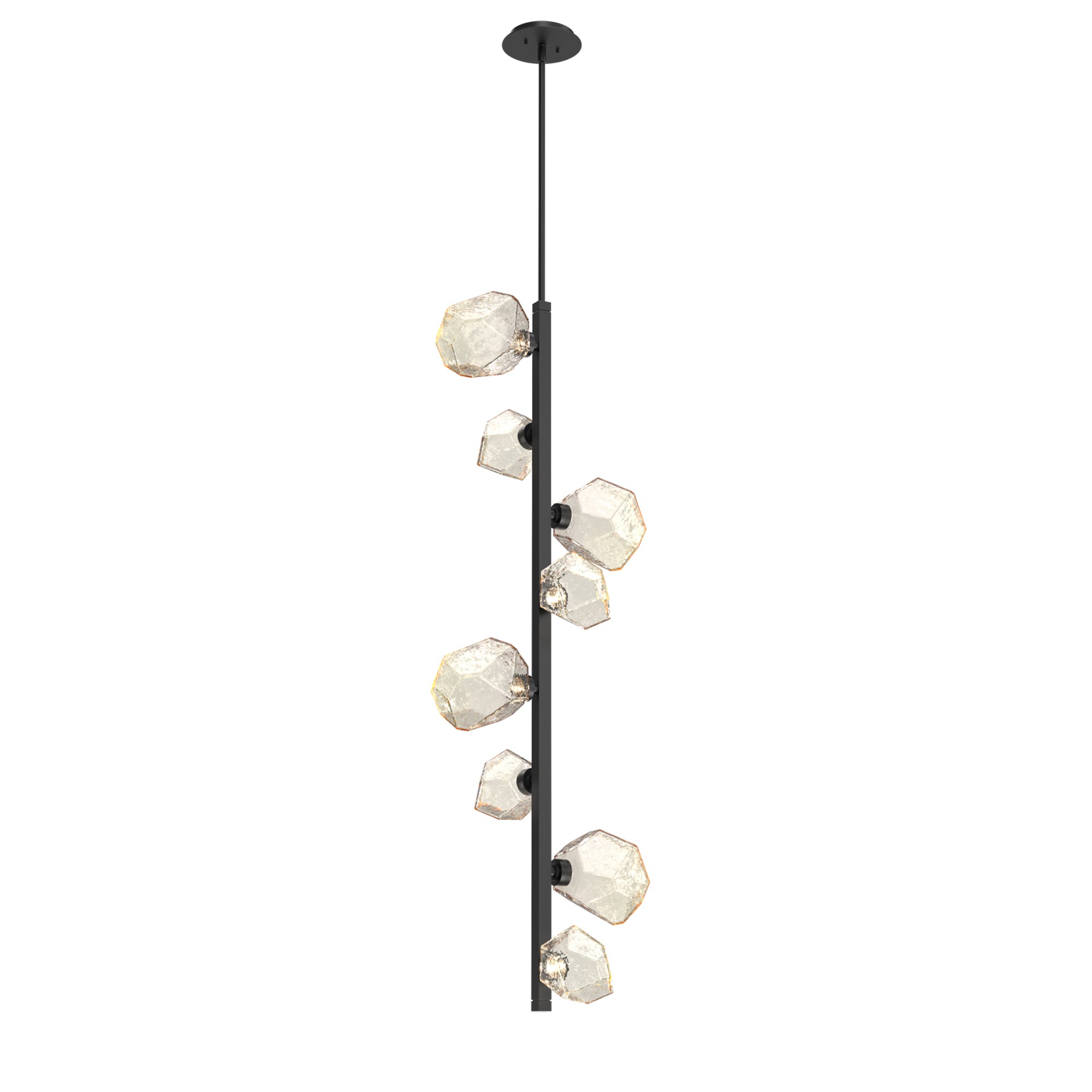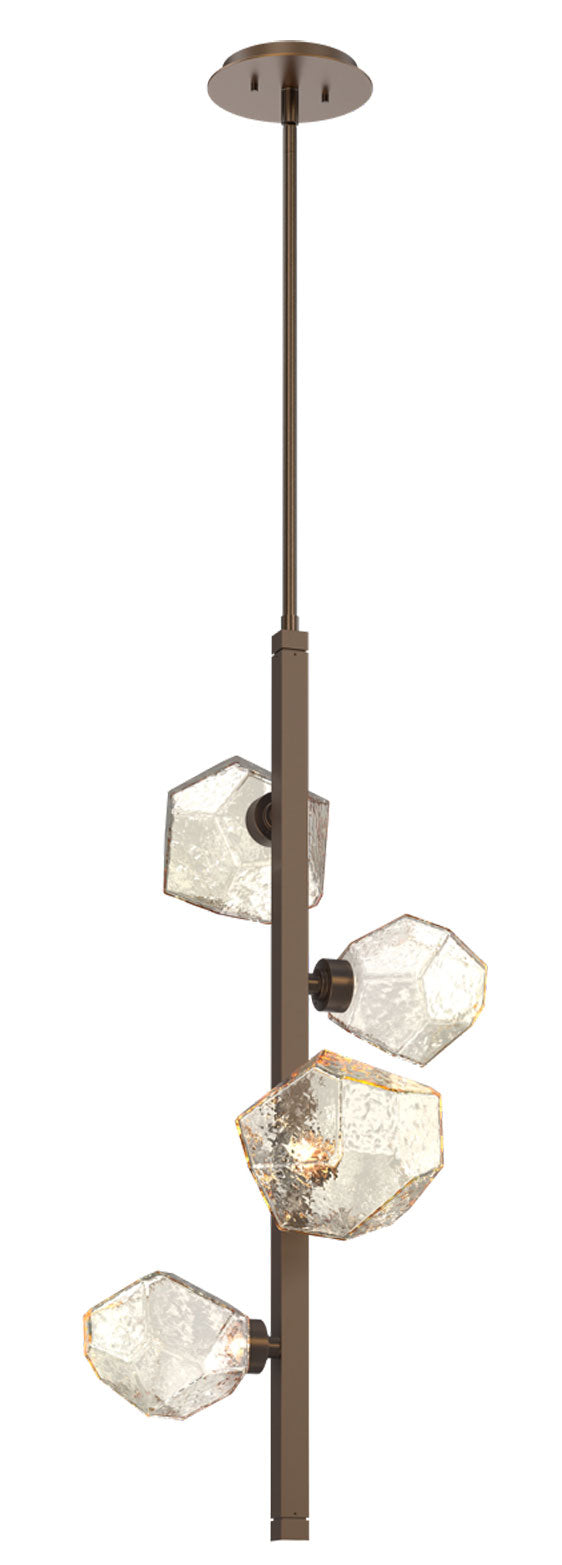 An artistic chandelier featuring a twisted vine design with amber glass accents and a flat bronze finish. Integrated LEDs provide warm and efficient illumination.
