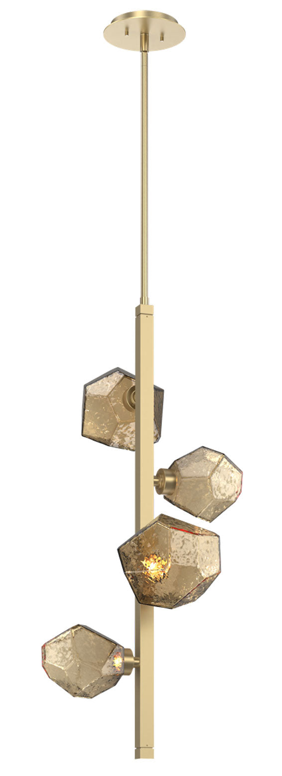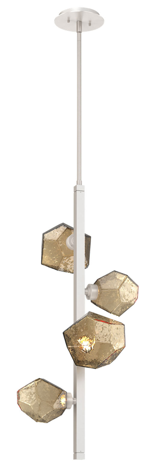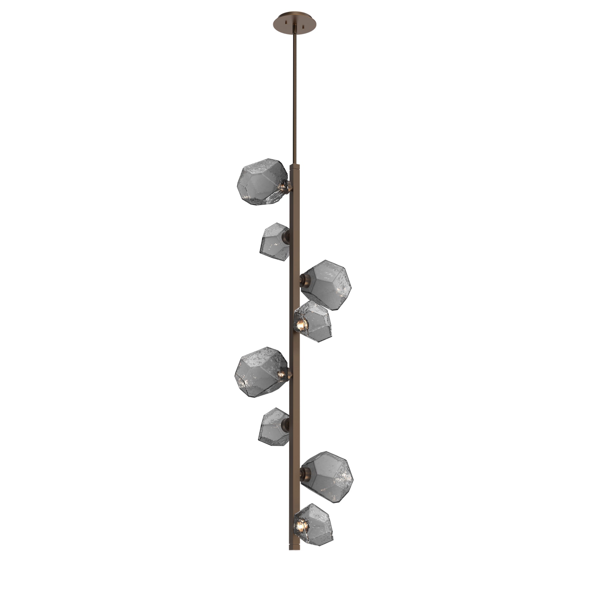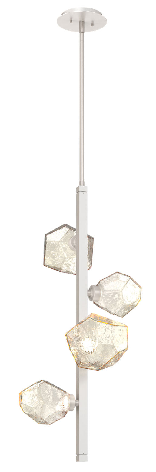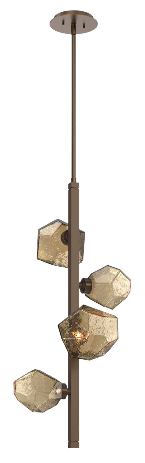 An artistic chandelier featuring a twisted vine design with amber glass accents and a flat bronze finish. Integrated LEDs provide warm and efficient illumination.