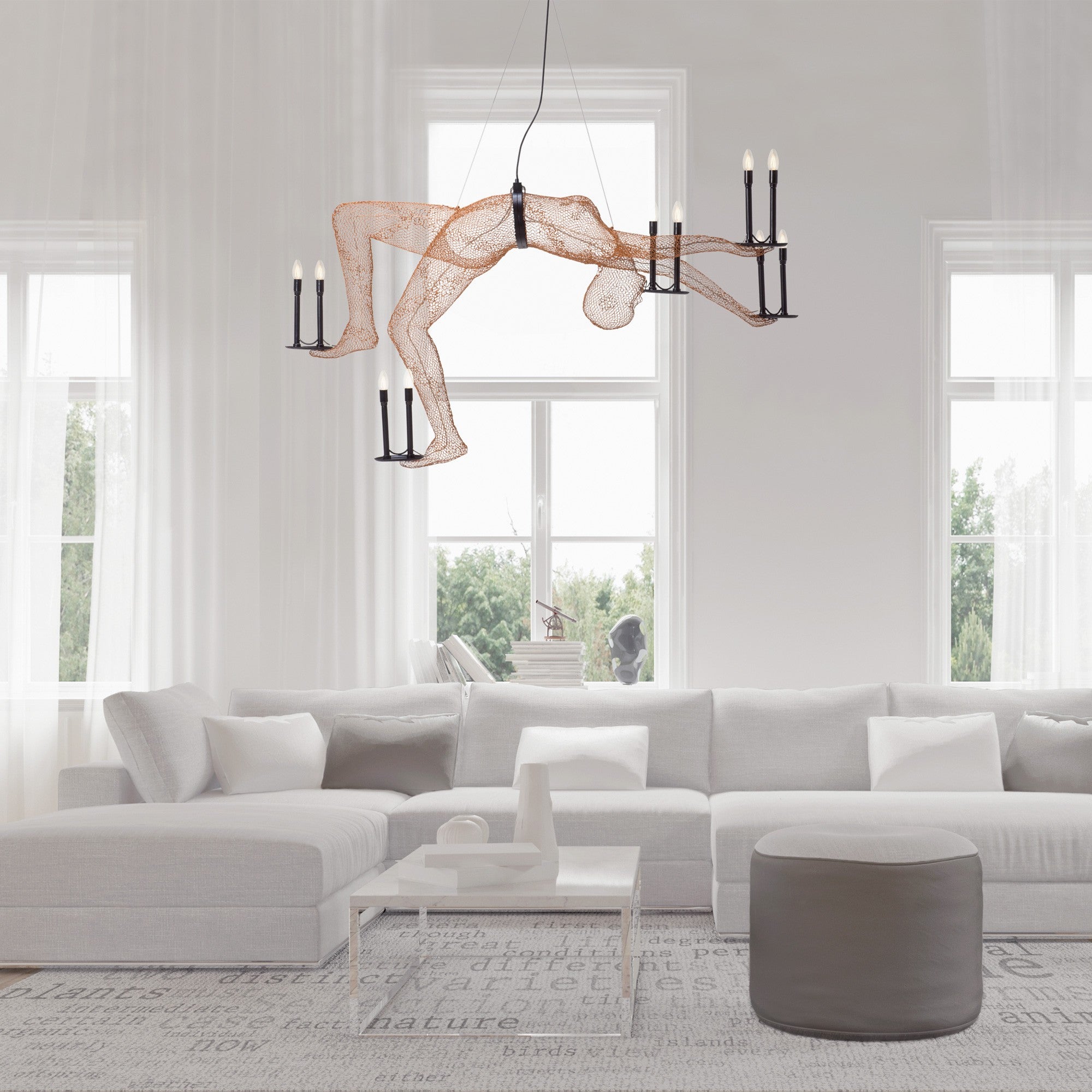 A bold and dynamic fixture, this articulating pendant chandelier features a sculptural arrangement of arms in a rich copper finish. Its industrial-inspired design brings movement and character to modern interiors.
