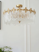 Bring artistic charm into your room with the Artisan Glass Pattern Chandelier. Its delicately etched round glass shades play beautifully with light, creating a refined ambience that feels both decorative and timeless — perfect for dining or living spaces.