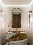 With its blend of gleaming brass and ribbed glass, the Brass Halo Tube Wall Light evokes timeless luxury. It casts a warm, even light that enhances the texture of walls and adds a refined vintage character to bedrooms, corridors, or vanity spaces.