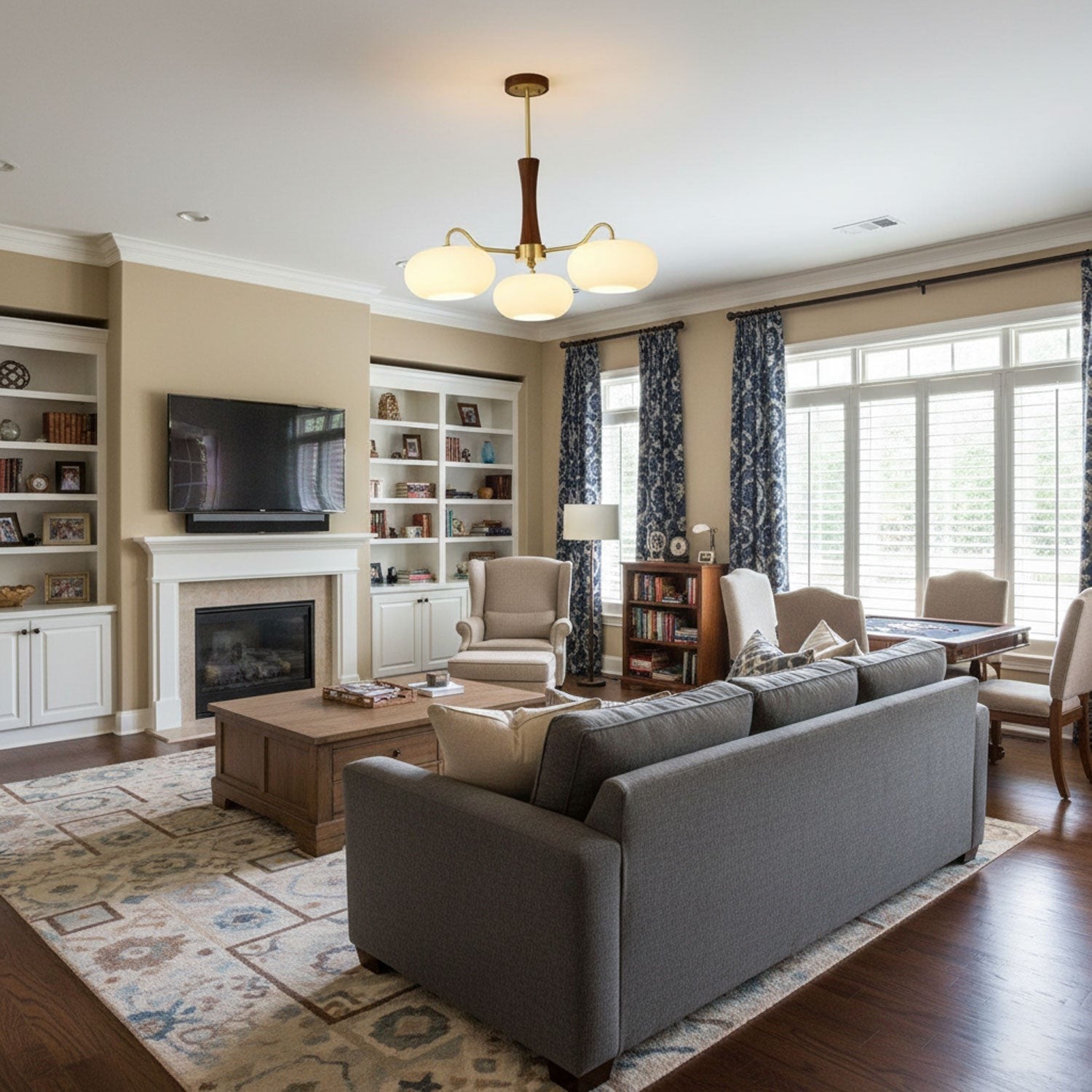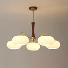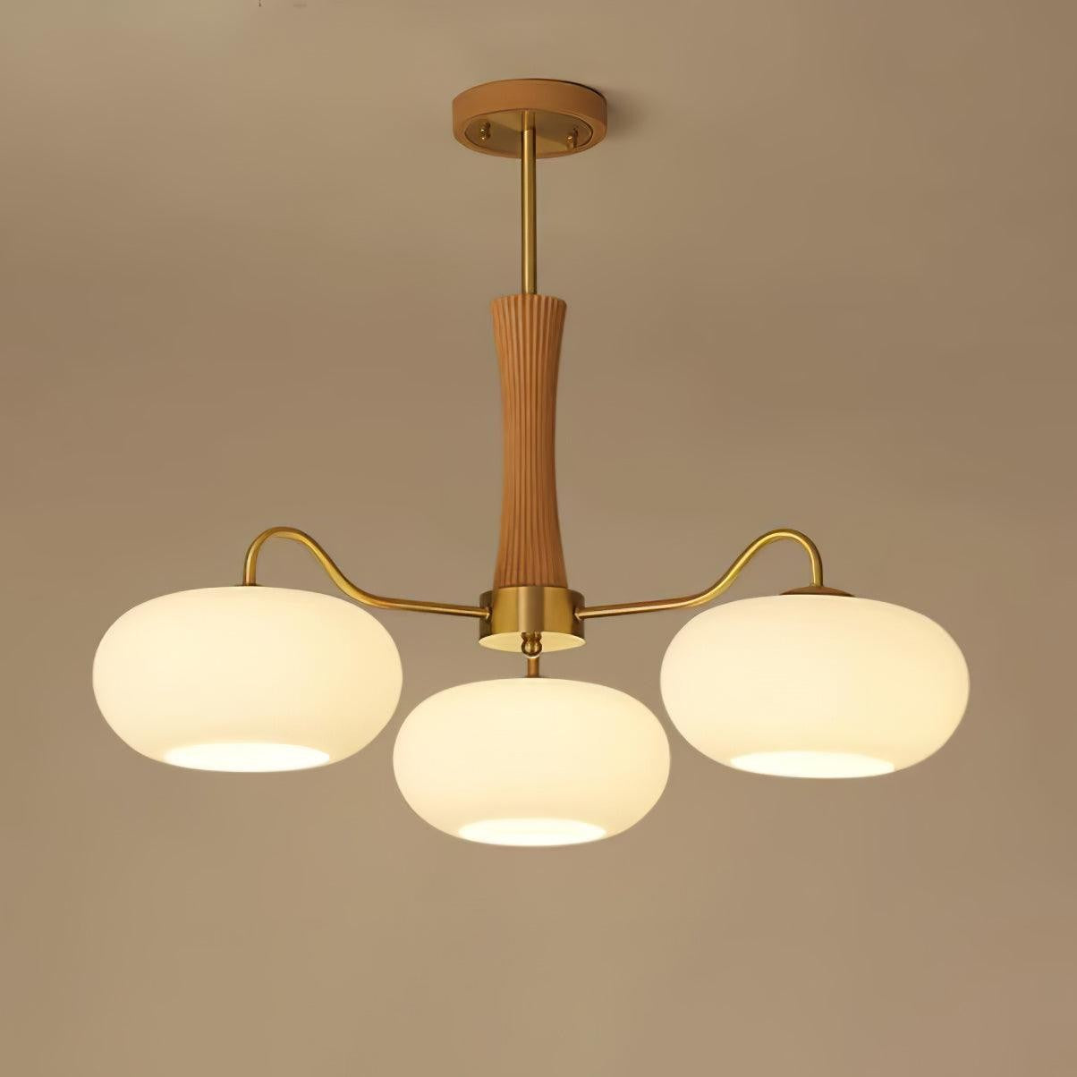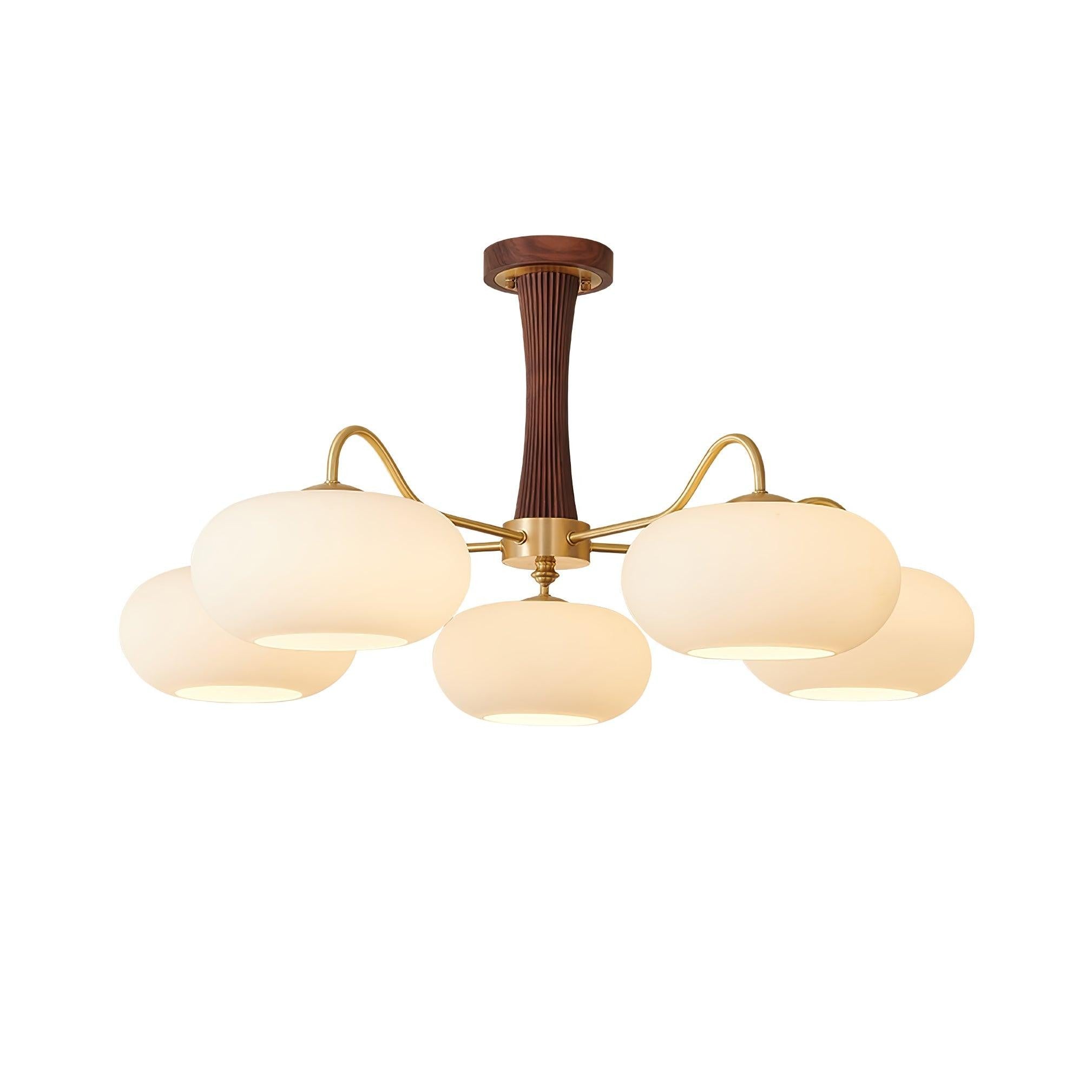 With its sculpted glass shades and warm brass detailing, this chandelier captures the essence of refined natural beauty. The mix of wood and brass brings rich texture, while the white glass globes emit a soft, romantic glow perfect for modern or traditional interiors.