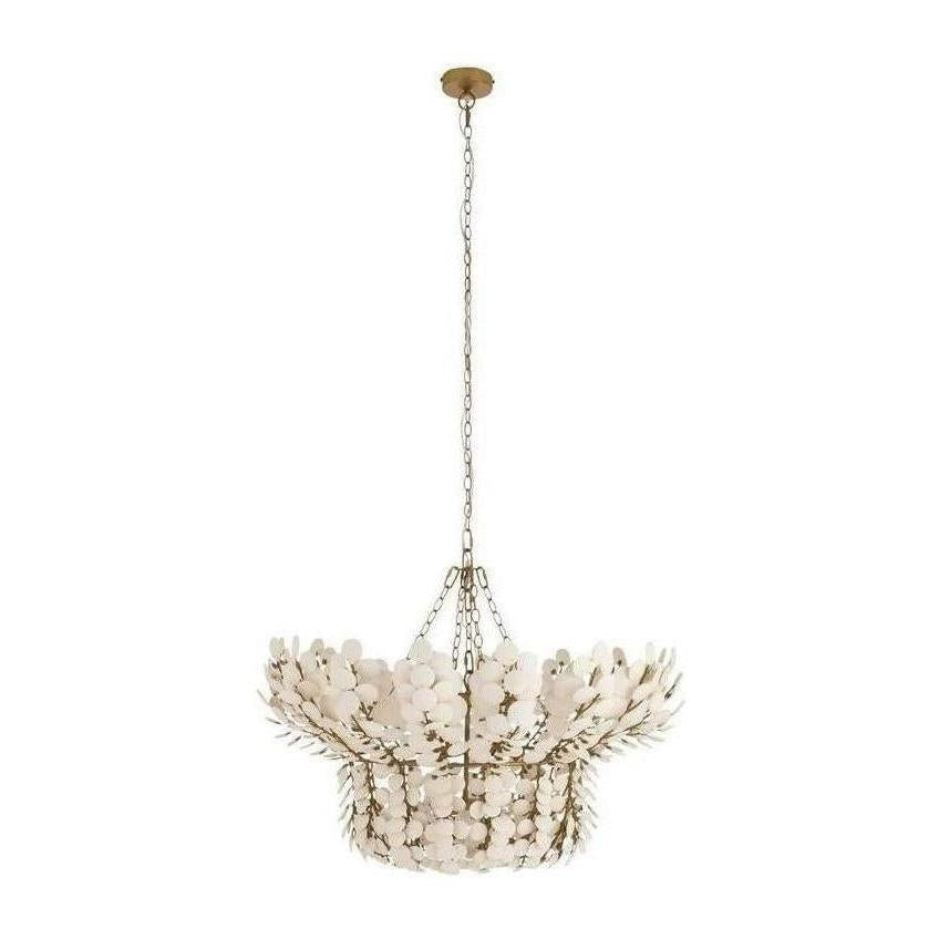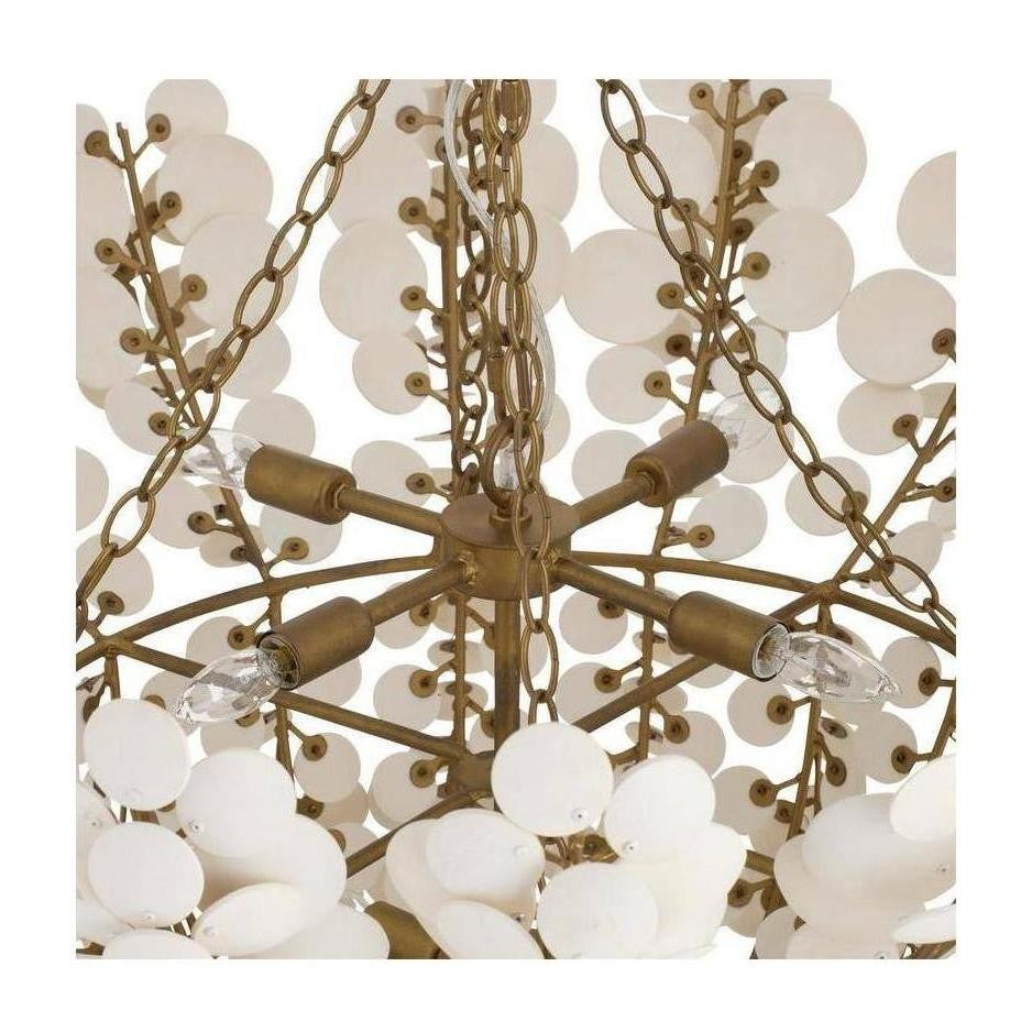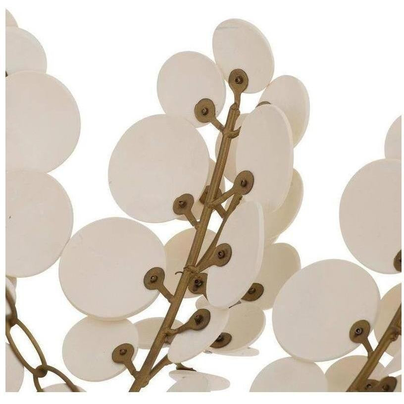 Inspired by tropical textures, this chandelier features layered discs crafted from natural coconut shells. Its organic design and soft neutral tones create a warm, inviting atmosphere with artisanal appeal.