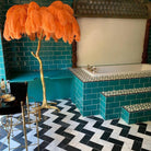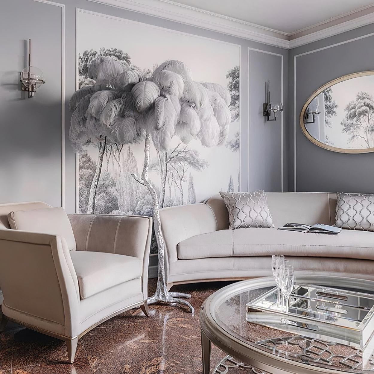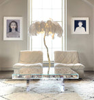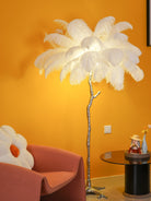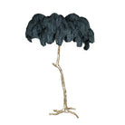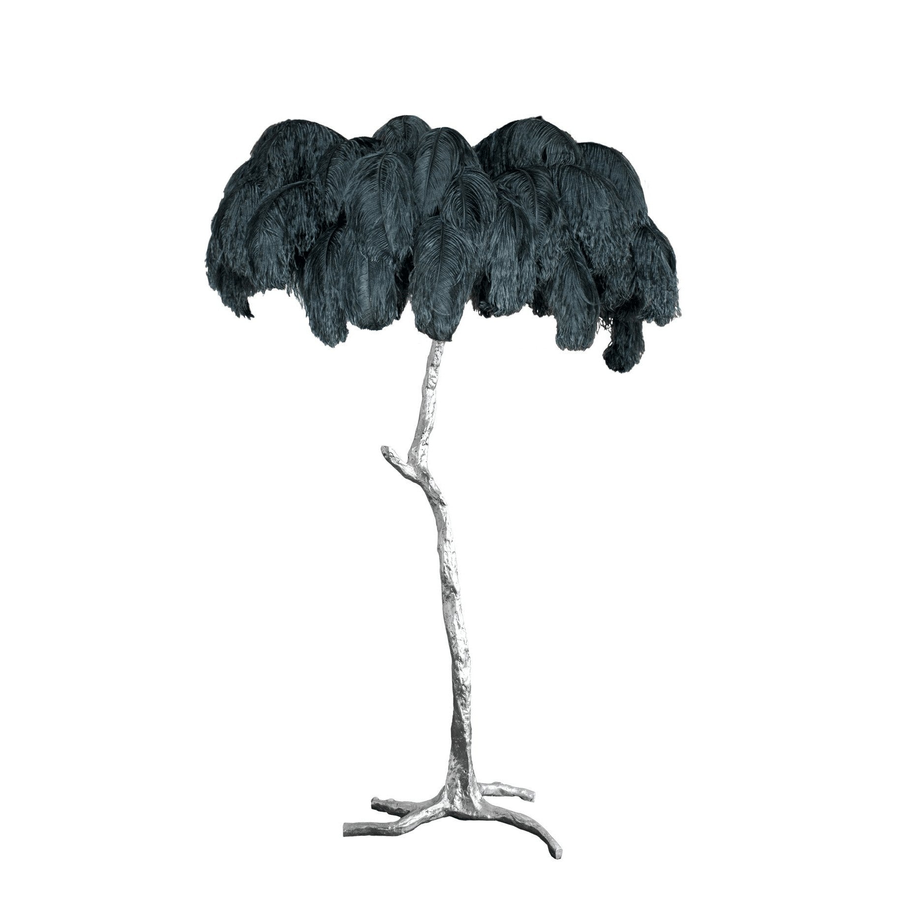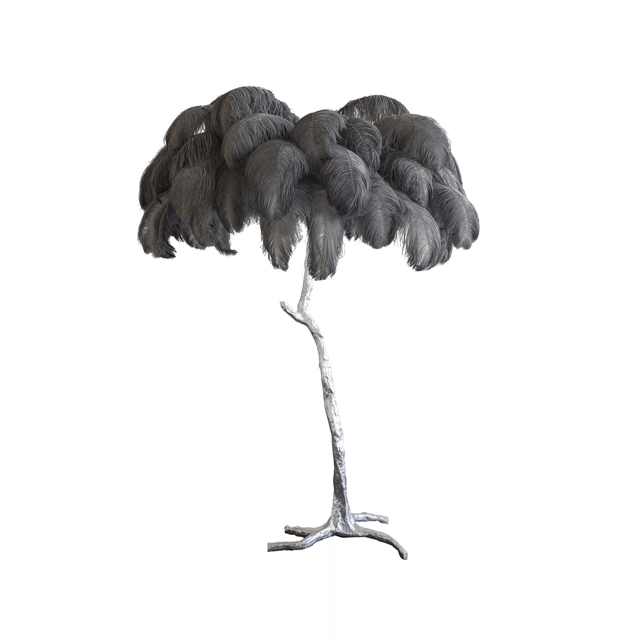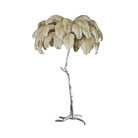A dramatic fusion of art and nature, this floor lamp stands tall with cascading ostrich feathers that exude luxurious texture and movement. The polished brass frame adds a touch of old-world glamour, transforming any space into a statement of timeless elegance.