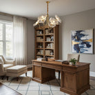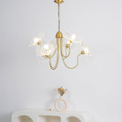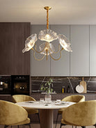 Graceful and organic, this chandelier resembles a cluster of lotus leaves crafted from frosted glass. Its diffused, soft light brings harmony and tranquility to dining rooms or entryways, making it as much a sculpture as a source of illumination.
