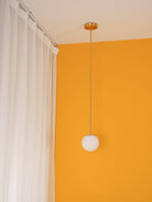 The Minimalist Brass Globe Pendant Light captures modern elegance in its purest form. Each pendant features a hand-blown opal glass sphere suspended from a slender brass rod, creating a calm and balanced atmosphere in any room. Whether displayed singly or in clusters, it enhances dining rooms, hallways, or bedrooms with soft, diffused illumination.