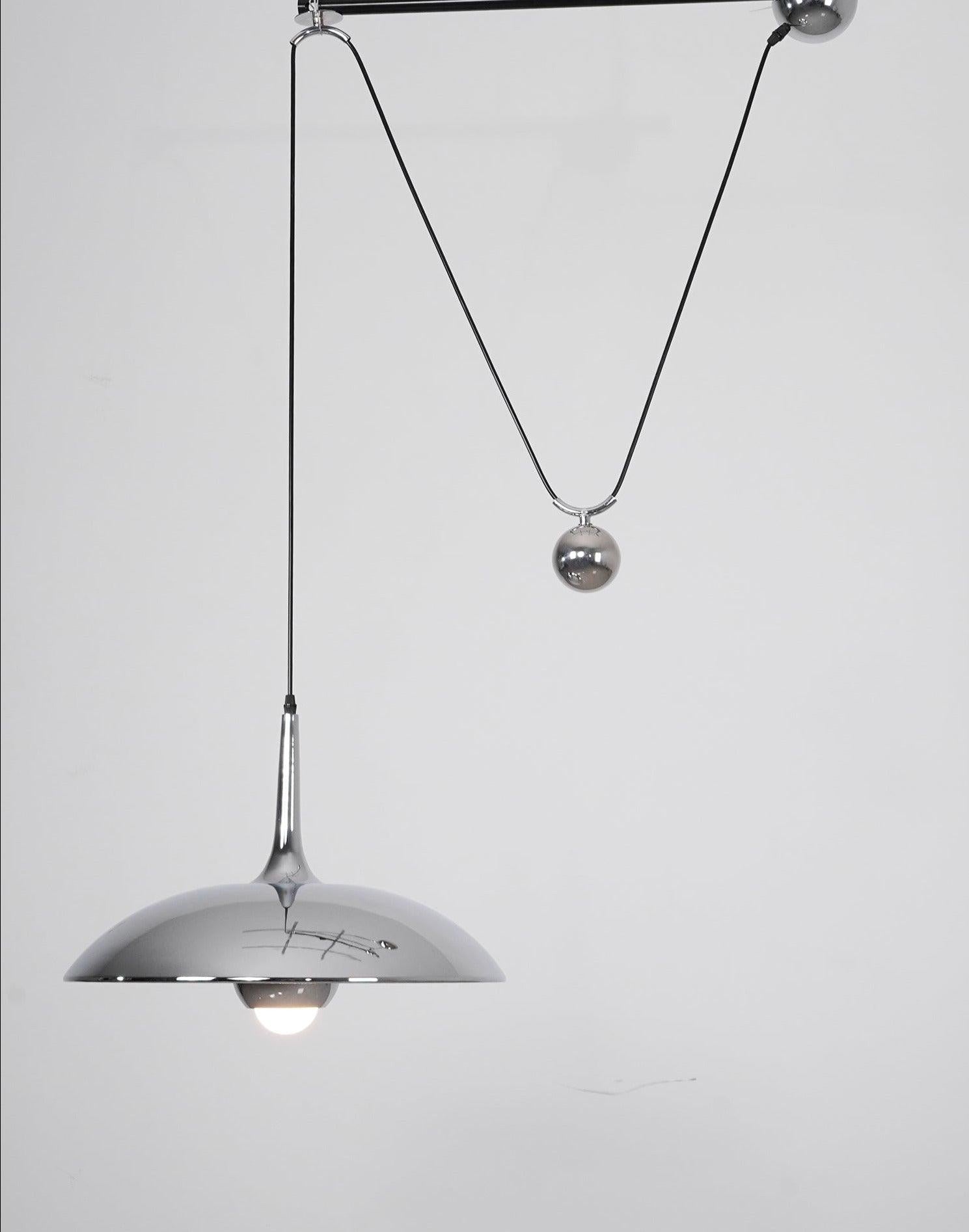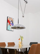 This striking pendant brings timeless 1970s charm into your home. Its minimalist form and elegant finish give off a warm, nostalgic glow, while the height-adjustable design lets you set the perfect ambiance — from cozy reading light to sophisticated dining illumination.