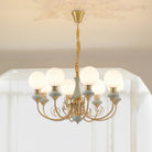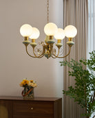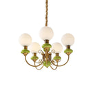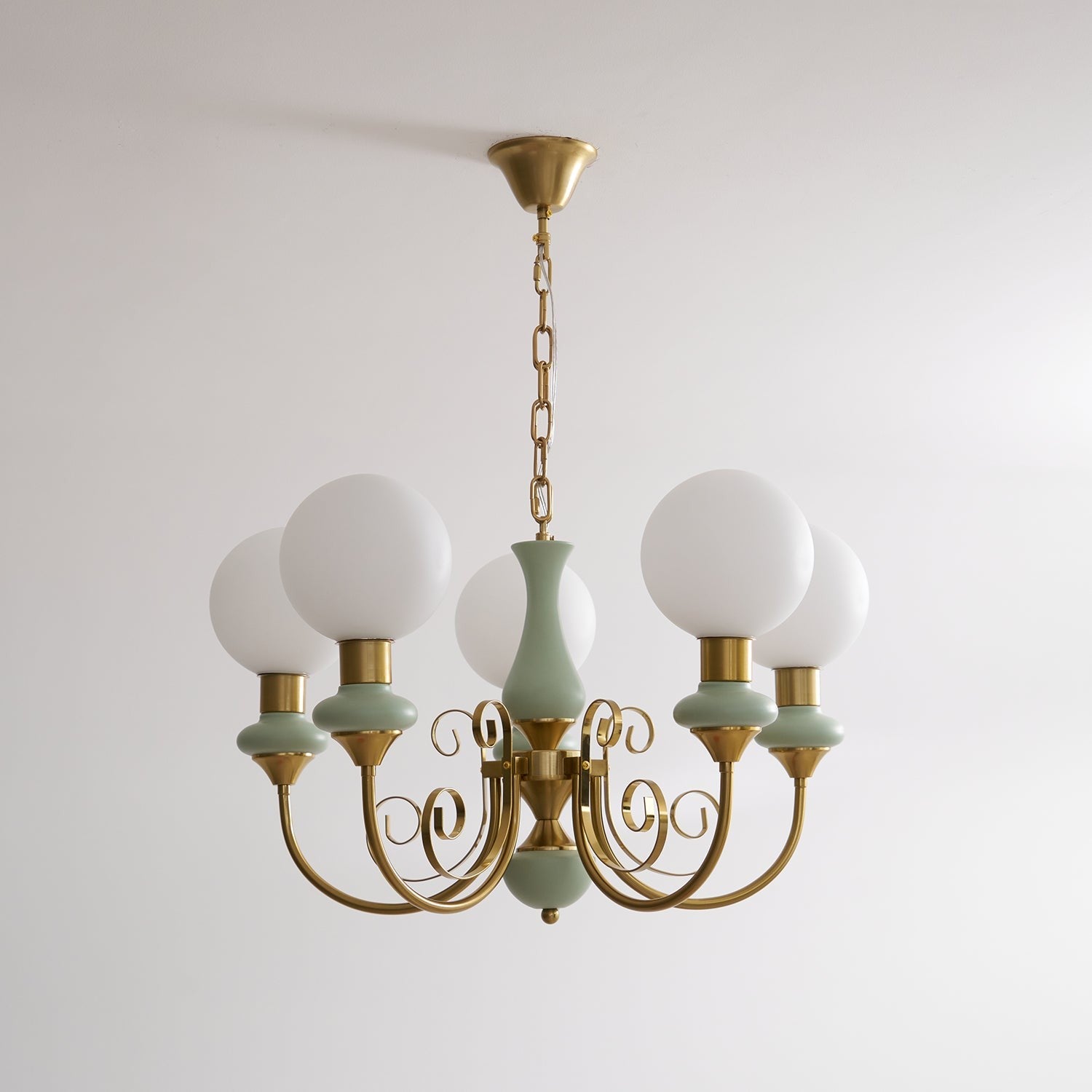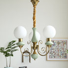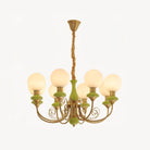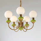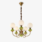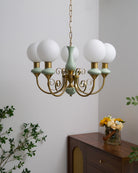 Elegant and bold, the Onyx Glass Chandelier captures attention with its radiant green shades and golden accents. Its luminous glow adds a luxurious touch to dining rooms, lounges, or entryways, blending timeless beauty with a hint of modern charm.