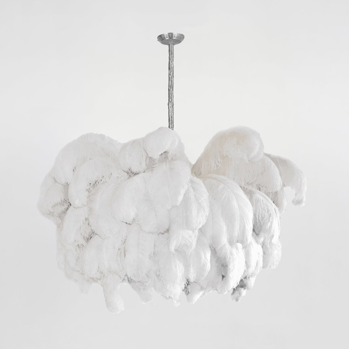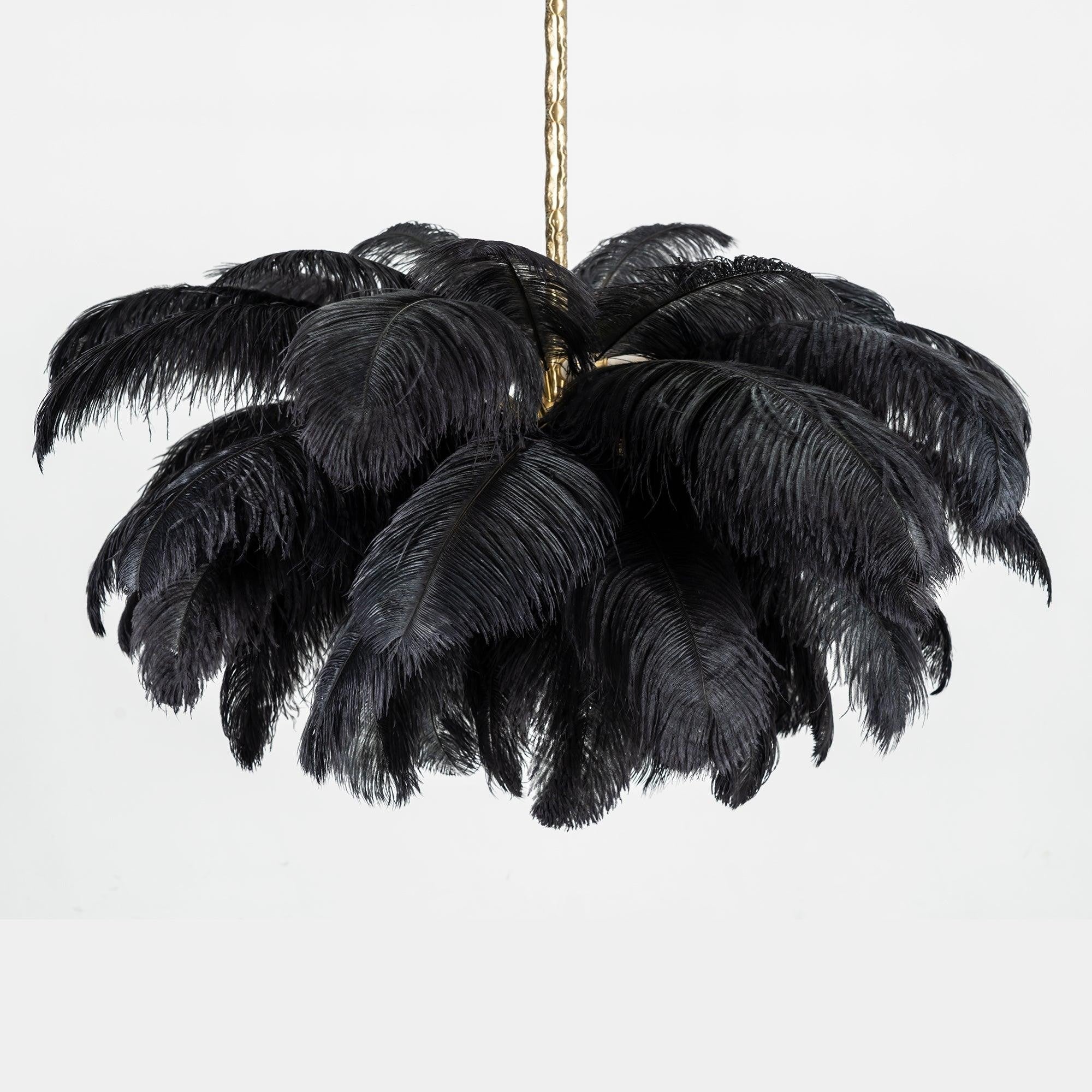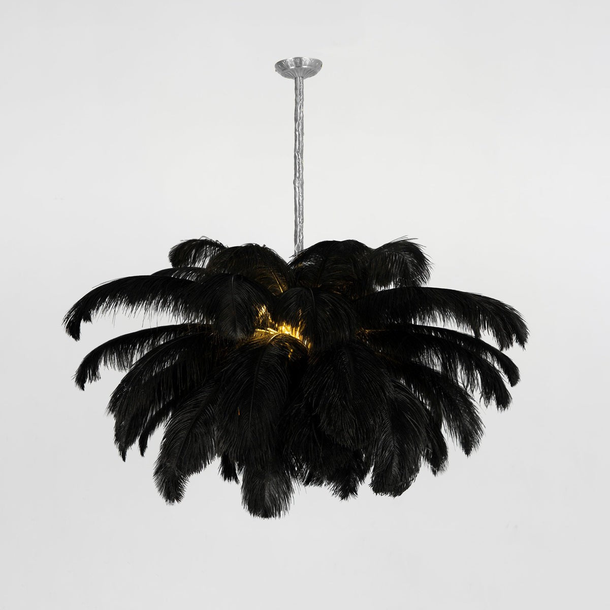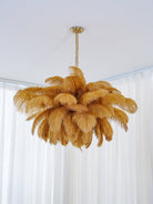 Sumptuous and sculptural, the Opulent Ostrich Feather Chandelier exudes timeless glamour. Each piece is hand-assembled with genuine ostrich feathers and a polished brass frame, diffusing light in a soft, romantic shimmer reminiscent of classic Hollywood interiors.