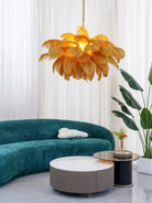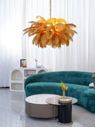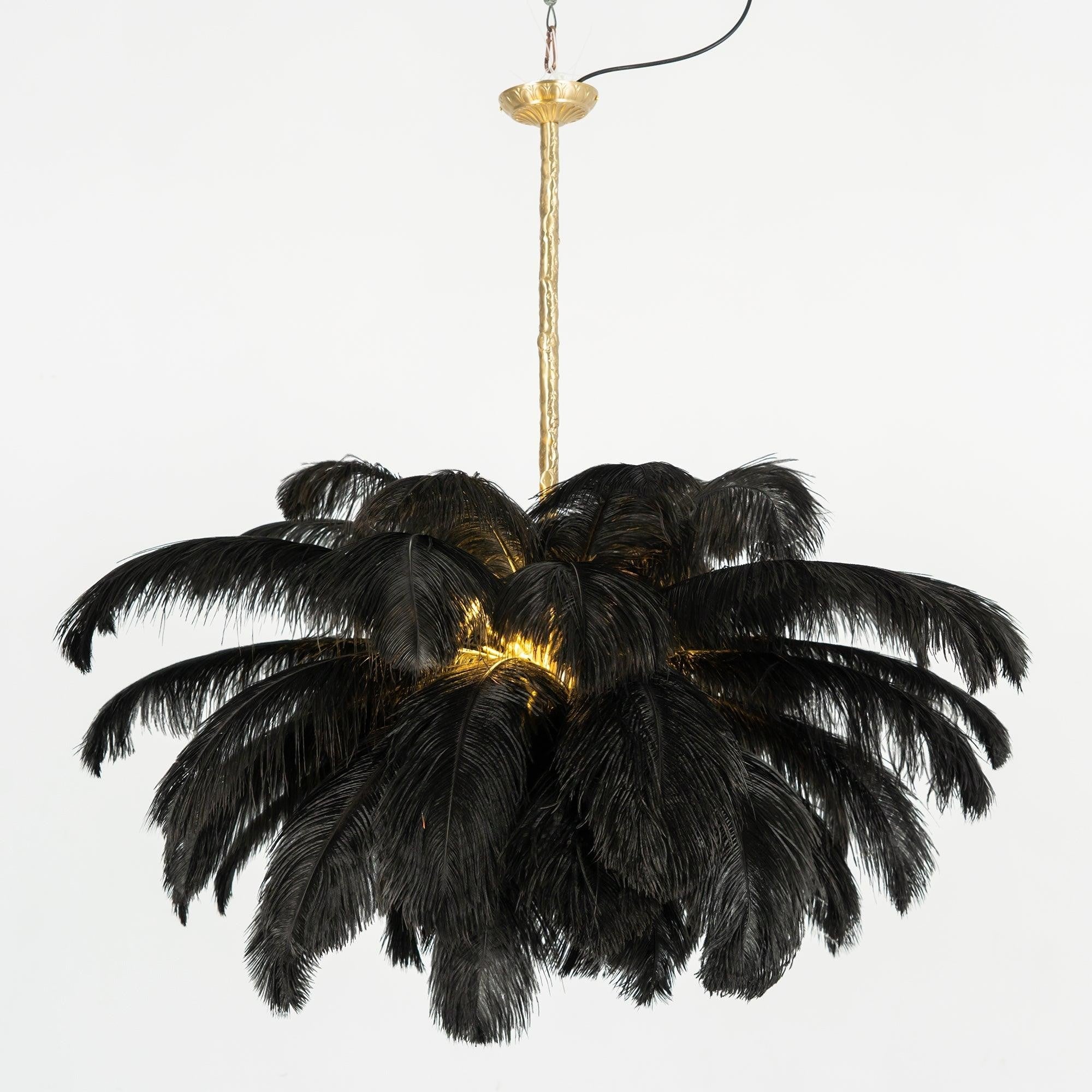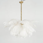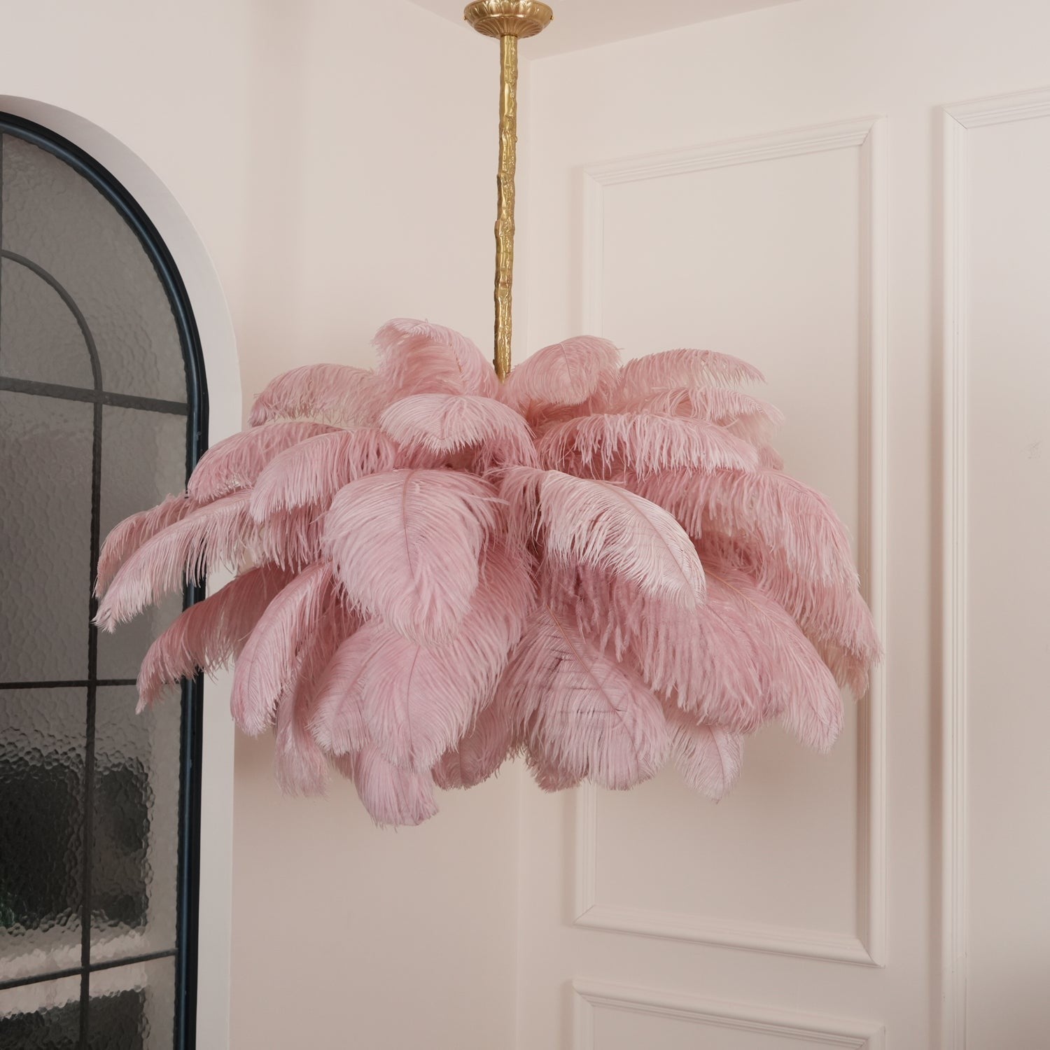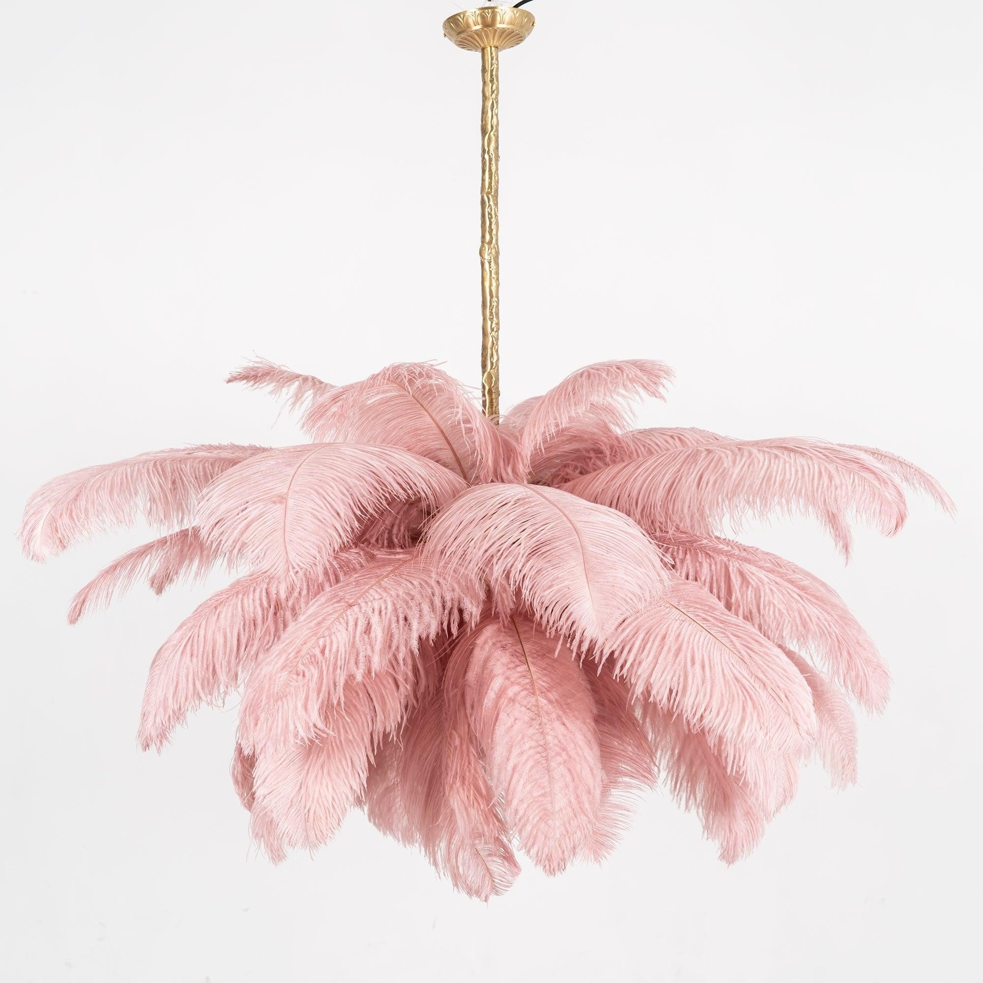 Sumptuous and sculptural, the Opulent Ostrich Feather Chandelier exudes timeless glamour. Each piece is hand-assembled with genuine ostrich feathers and a polished brass frame, diffusing light in a soft, romantic shimmer reminiscent of classic Hollywood interiors.