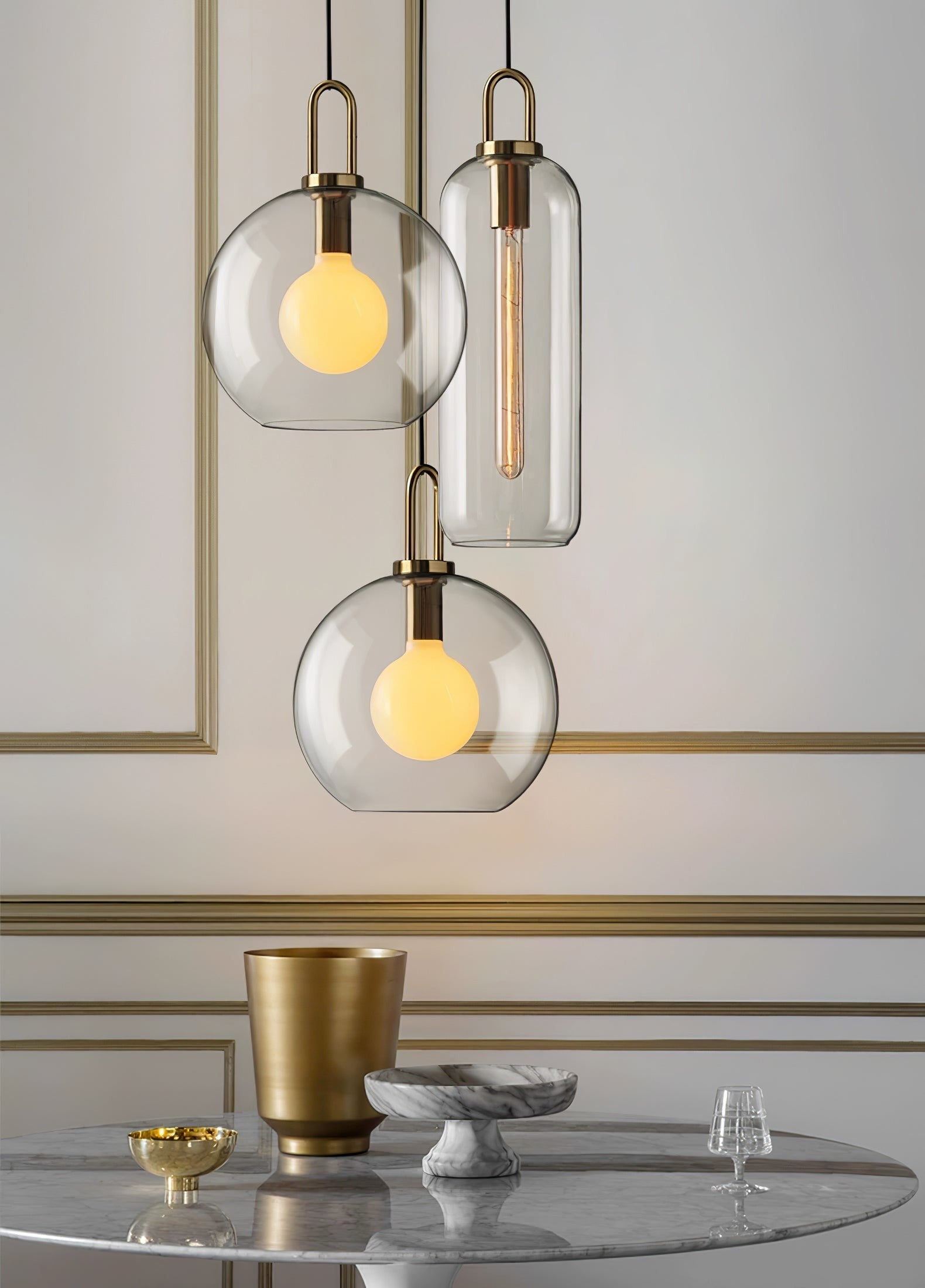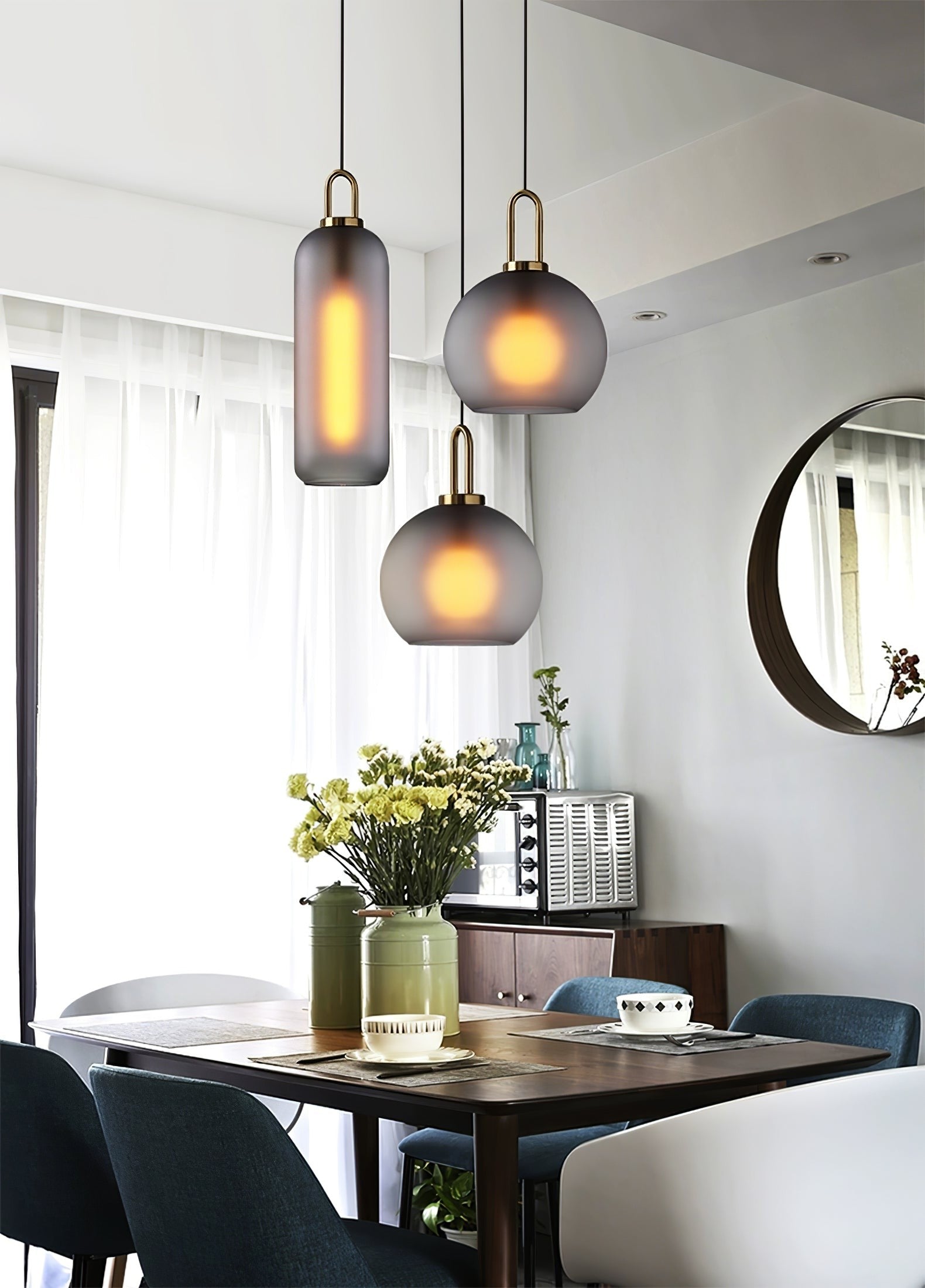 Refined and versatile, this pendant features curved glass shades that glow softly while suspended from sleek metal fittings. Whether hung solo or in clusters, it adds an elegant, modern touch to bedrooms, dining rooms, or entryways.