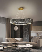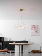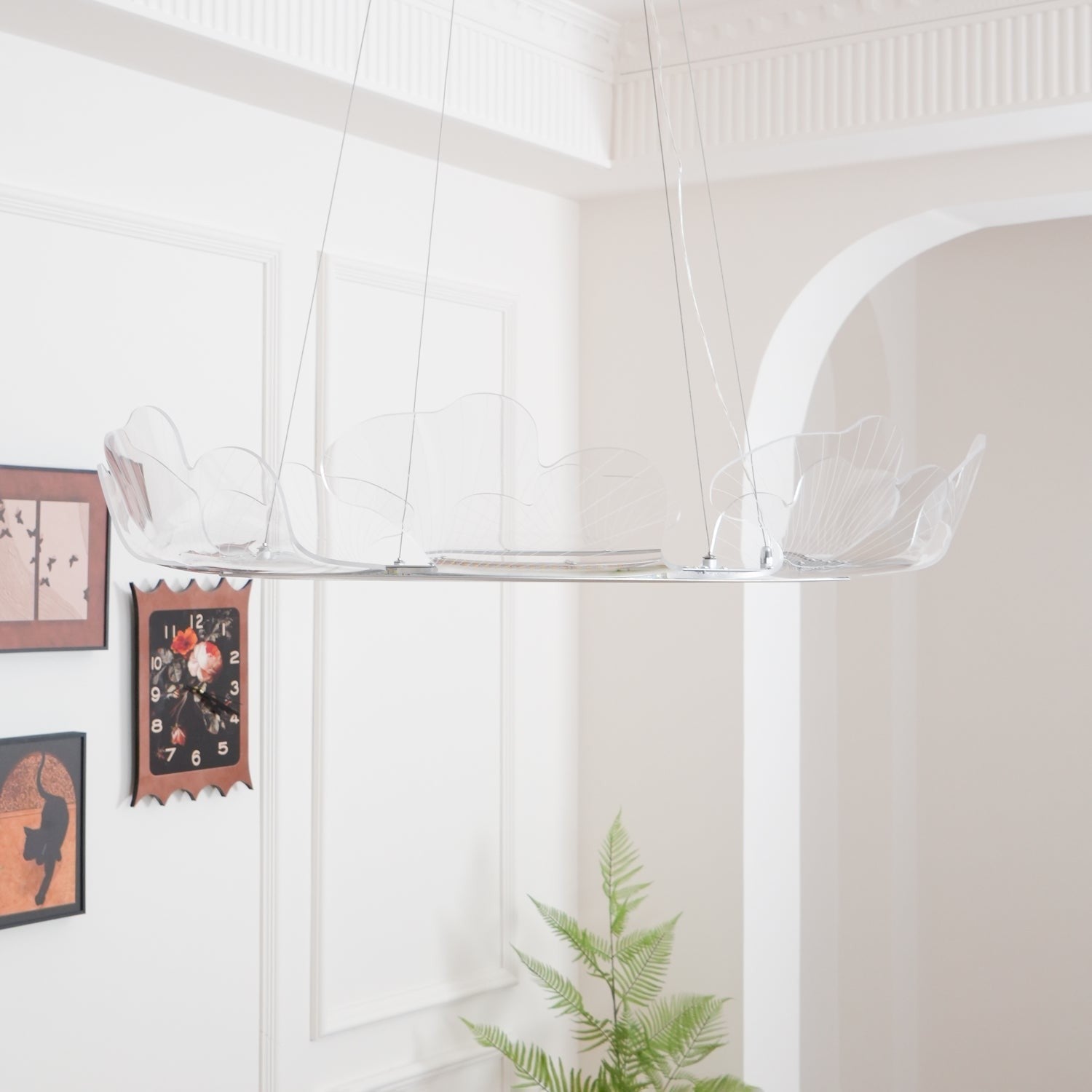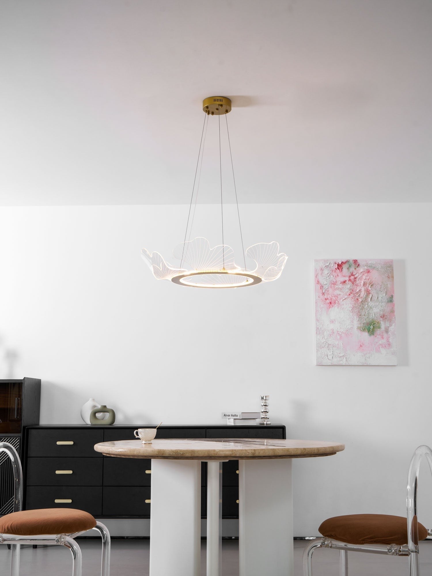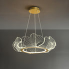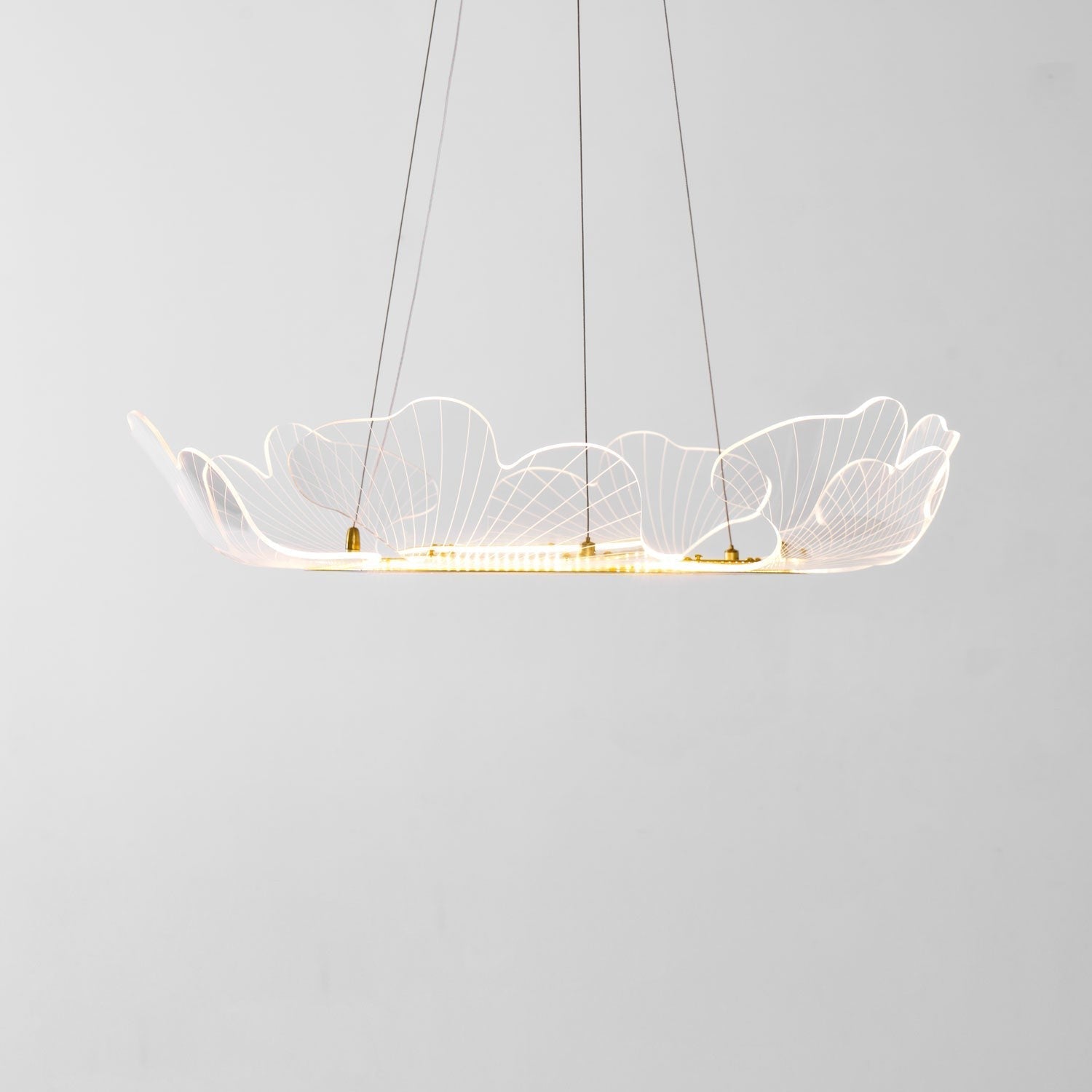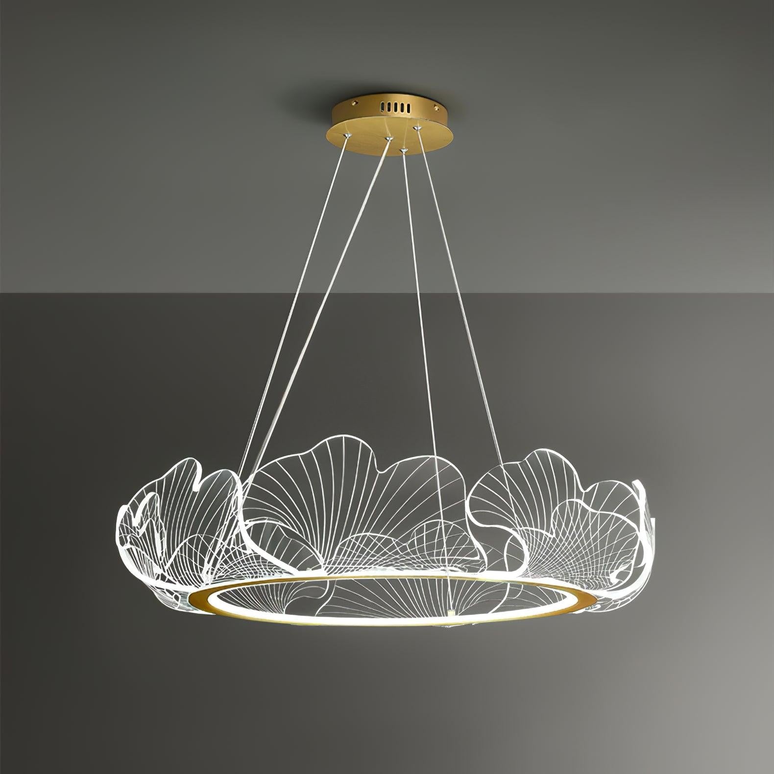 Inspired by ocean textures, the Sea Fan Chandelier features layered metal leaves in a rich golden finish with subtle scalloped edges. Its flowing shape and radiant light evoke the calm rhythm of waves — a striking statement piece for dining rooms or grand entryways.