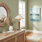 • Finishes: Walnut/Nickel base, Beige or Green shade