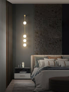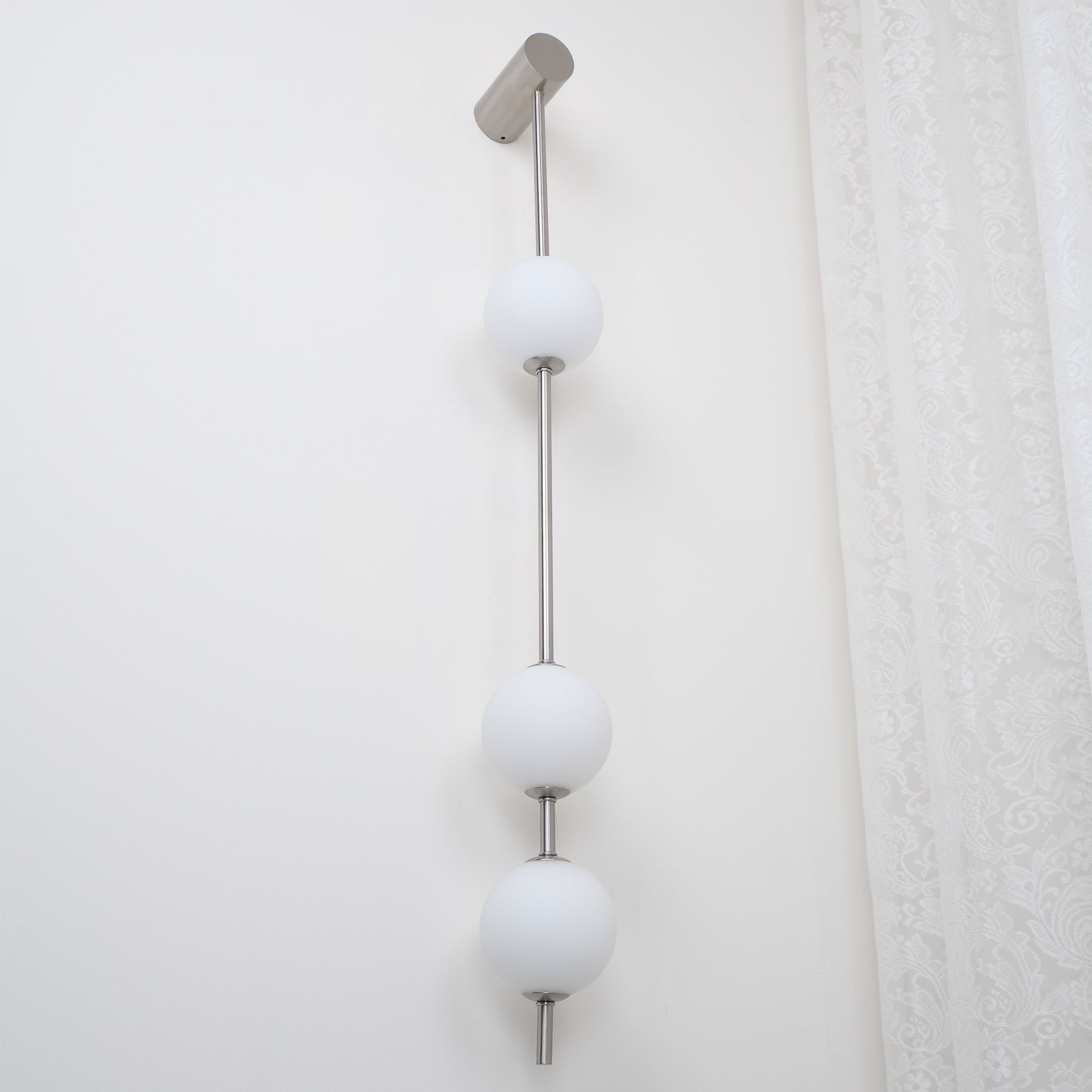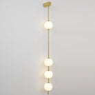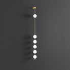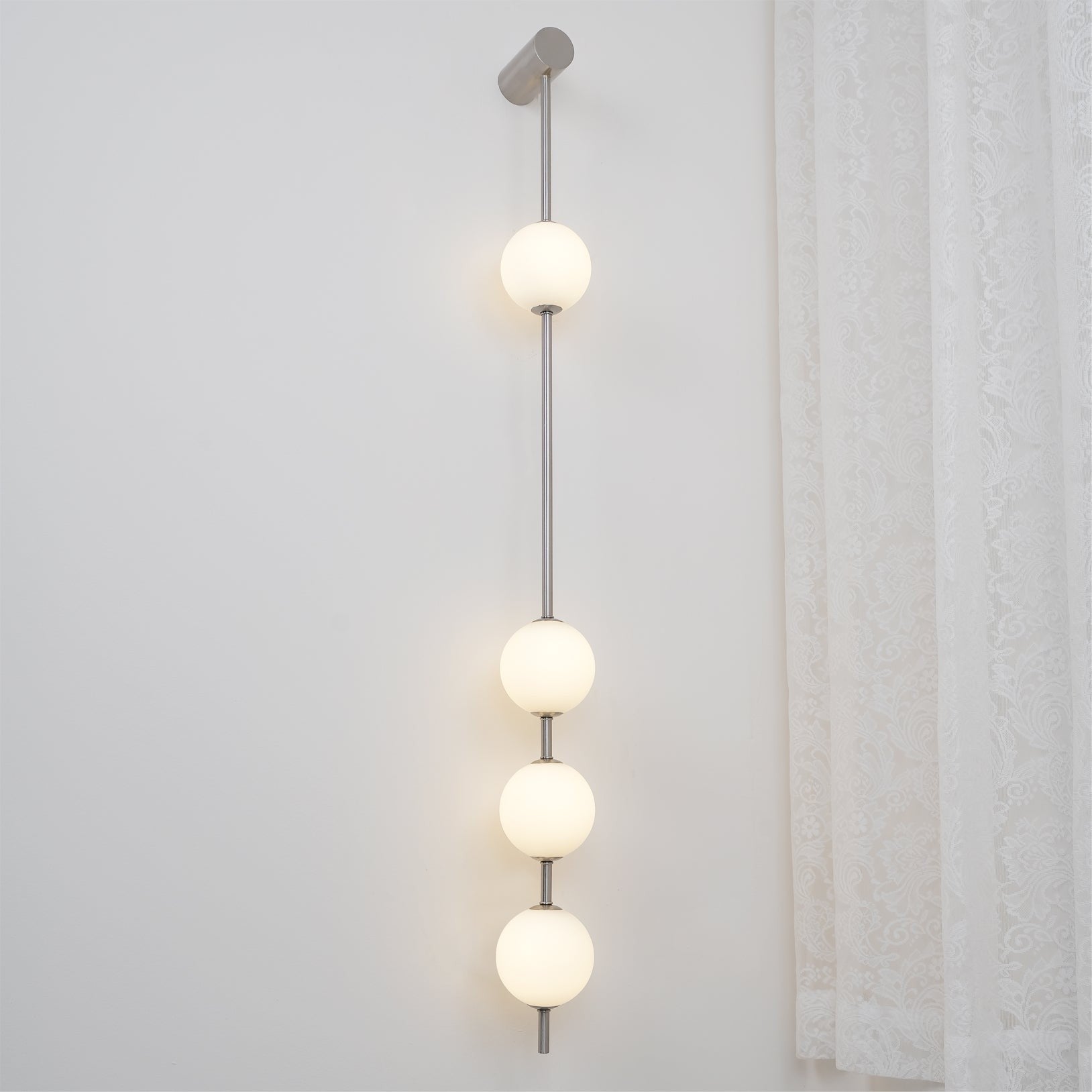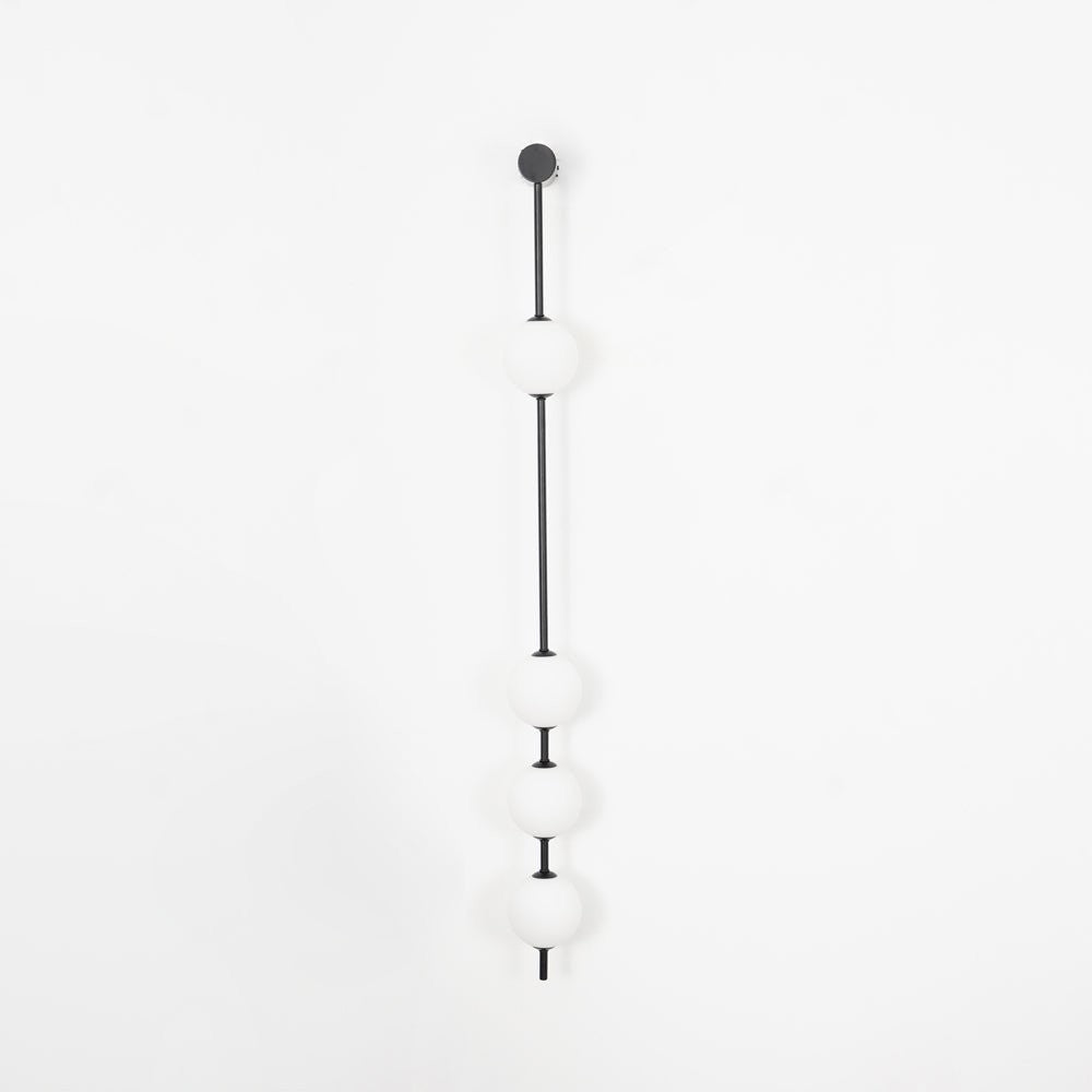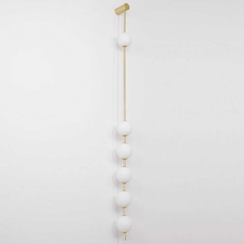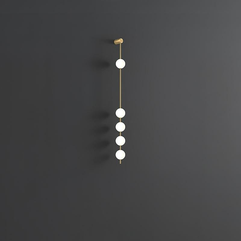 Elegant and linear, this wall light combines refined brass tones with softly illuminated glass orbs for a stunning vertical effect. Perfect for hallways, staircases, or entryways, its balanced composition adds both light and visual intrigue to contemporary interiors.